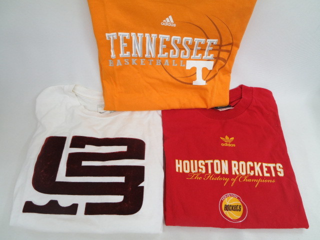 以前アメリカより輸入で購入しました “アディダス”&”ナイキ “・バスケットボール・半袖Tシャツ・ユース・3枚セット です。アディダス・テネシー大学(オレンジ)はサイズ:ユース:Lサイズ(14-16)で平置き実寸・チェスト:46cmx2・丈:65cm・カラー:オレンジx白です。素材は100%コットンになります。フロントT部分のプリントにひび割れが見られます。アディダス・NBA・ヒューストンロケッツ・チャンピオンTシャツ(レッド)はサイズ:ユース:Mサイズ(10-12)で平置き実寸・チェスト:45cmx2・丈:60cm・カラー:赤x黄色x白です。素材は100%コットンになります。前後にマークがプリントがされています。ナイキ・レブロンジェームス・Tシャツ(ホワイト)はサイズ:ユース:Mサイズ(10-12)で平置き実寸・チェスト:47cmx2・丈:58cm・カラー:白xワインレッドです。素材は100%コットンになります。フロントにフェルト仕様のマークがプリントがされています。匂い等(当方タバコは吸いません・ペットもいません)はありません。洗濯済みですがシワ等があります。使用回数は少なく(写真を参考にして下さい。)汚れやシミ・傷・破れ等はありませんが神経質な方は入札をご遠慮下さい。たくさんの入札をお待ちしています。発送は定形外郵便(全国一律¥920)・レターパックプラス(全国一律=¥600)・郵パック着払い(持ち込み料金・60サイズ)のいずれかになります。ノークレーム、ノーリターンでお願いします。
