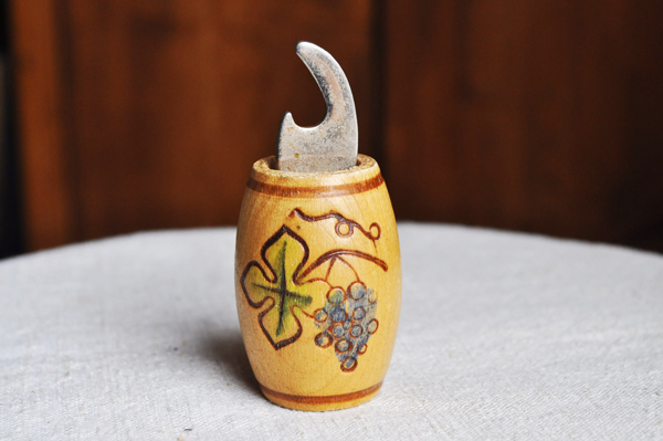 チェコヴィンテージの栓抜きです。 木製で樽の形をしています。 焼きコテで描かれたイラストにハンドペイントによる ペイントが施されています。 細かな傷などありますが良い味が出ています。 コレクションにもおススメです! 《買付け国》 チェコ 《年代》 不明 《サイズ》 高さ=約7.5cm、直径=約3cm |