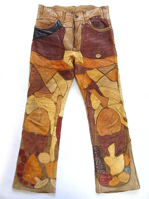 アイテム詳細:ヴィンテージミュージアムピースヒッピーレザーパッチワークブーツカットパンツ