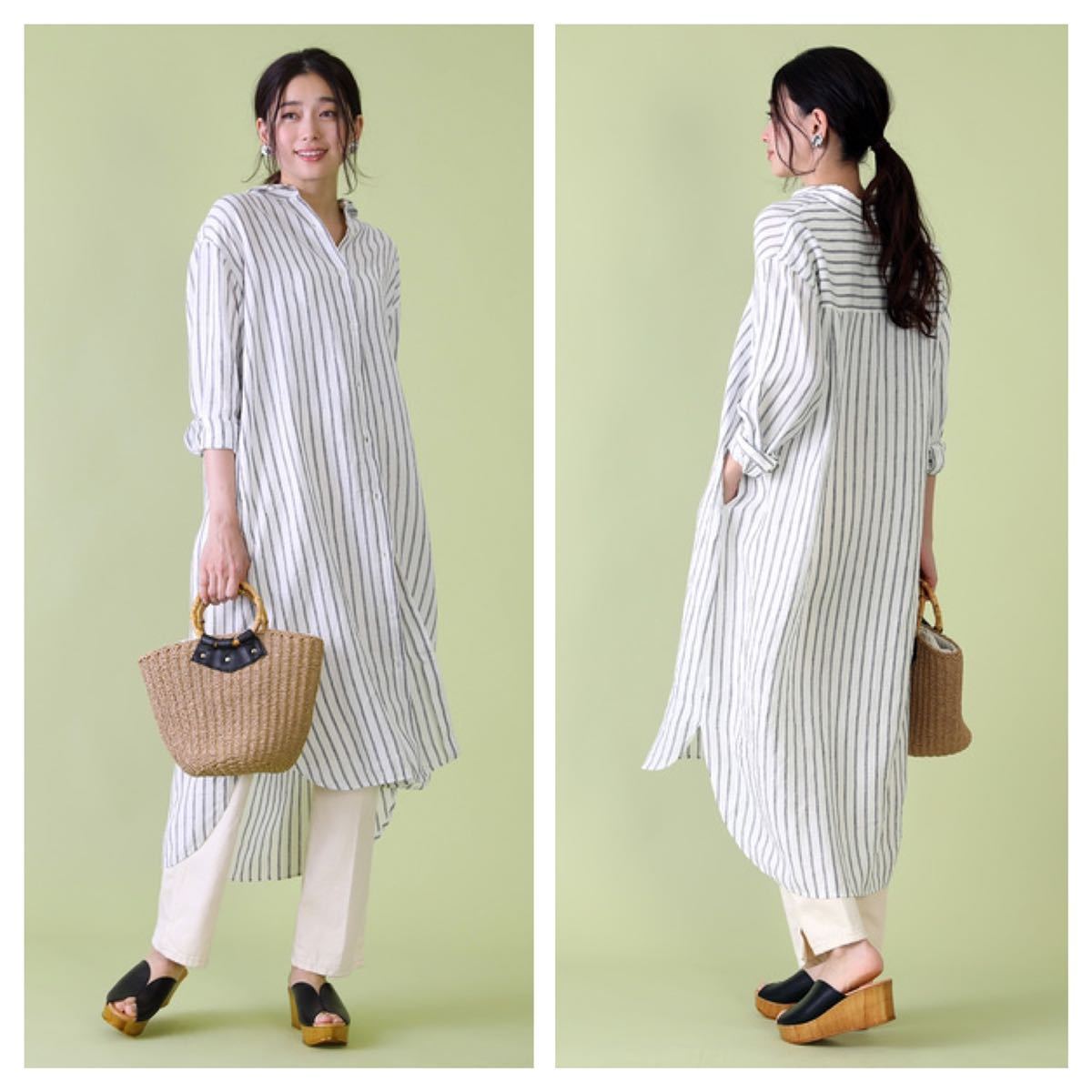 テクニック要らずのシャツワンピースは1枚あるとコーディネートの幅がぐっと広がり便利なアイテム。パンツとレイヤードしやすい前が長めのシルエットなので小柄な方でも、ボトムとのレイヤードした着こなしを楽しめます。定番のスキニーパンツと合わせたカジュアルスタイルもサマになります。羽織りとして着る時は、マキシ丈のスカートに合わせると今年らしくて新鮮。お手持ちのベルトでウエストをマークし、着丈を調整して着るのがおすすめです。