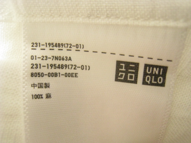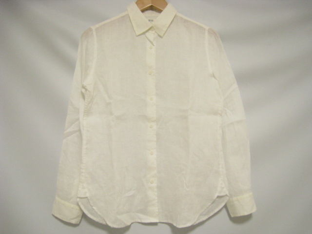 UNIQLO ユニクロ トップス シャツ 長袖 白 ホワイト Sサイズ 麻100% 無地 シンプル