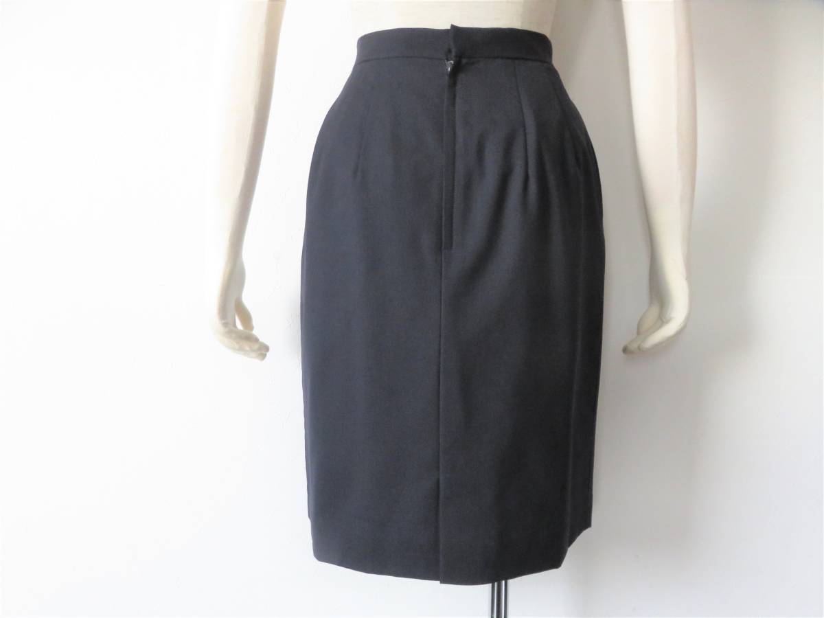 スカートはバックでファスナー、ホック止め、総裏地、両サイドにポケット、バックセンタースリット。