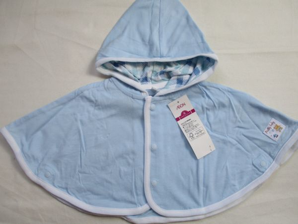 SF312【AEON】イオン 新品 クマ柄チケット付 新生児ケープ 淡青 50-60 | ||