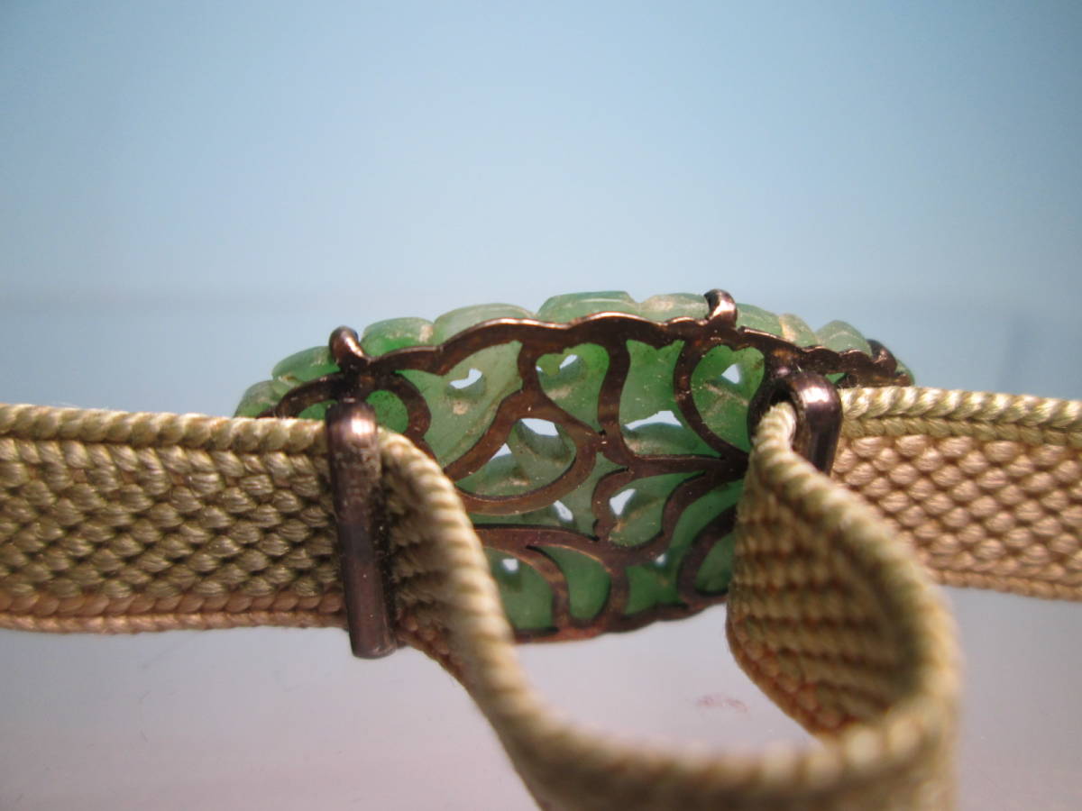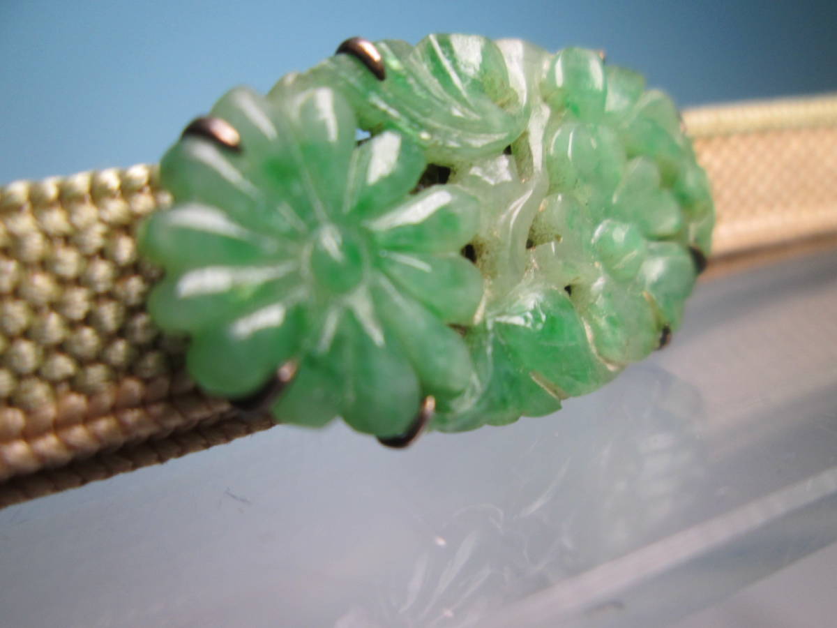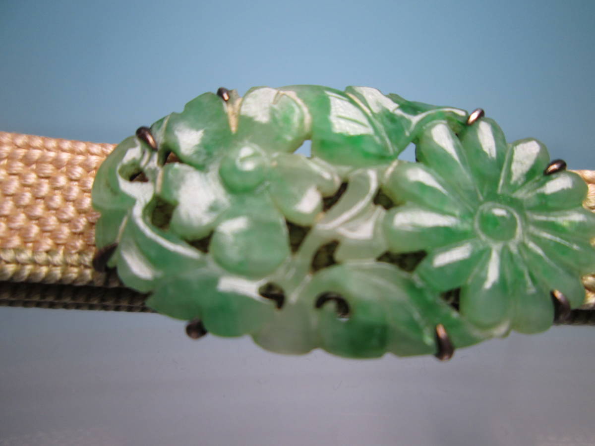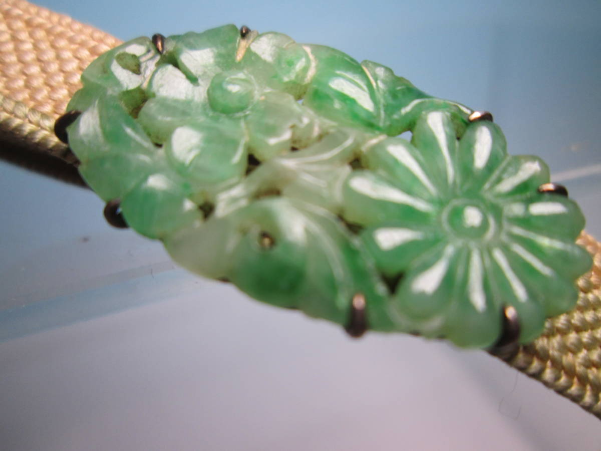 【江月】アンティーク・銀製 本翡翠 花透かし彫刻の帯留め