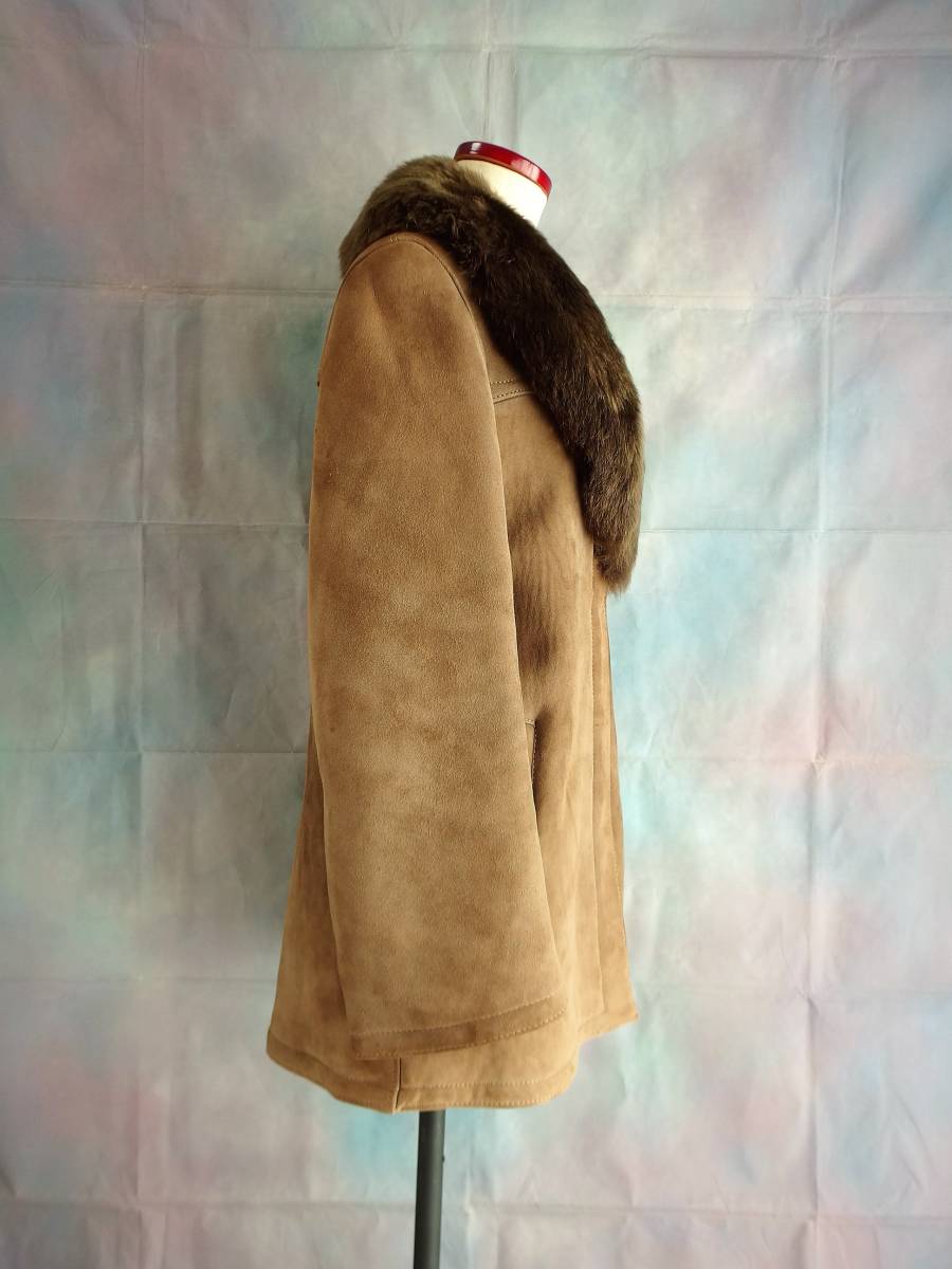 | ・商品説明・ サイズ: Mサイズ( 画像は9号トルソーに着せています。) 色: こげ茶 ※平置きでの採寸です。 肩幅 40.5cm。(両肩を直線で結んだ線)。 身幅 49cm。(両脇を直線で結んだ線)。 袖丈 59cm。(肩~袖先) 着丈 73cm。(背中心~裾) ※裾に雨に打たれたようなシミがポツポツとあります。(普段使いでしたら、気にならない程度だと思います。) その他は、少々の使用感はございますが、状態、良好です。まだまだ着用して頂けます。 重量1.7㎏です。 肉厚のとても暖かなコートです。 ※素材表示は画像でご確認ください。 ・コメント・ 他にも出品しておりますのでご覧ください。 |