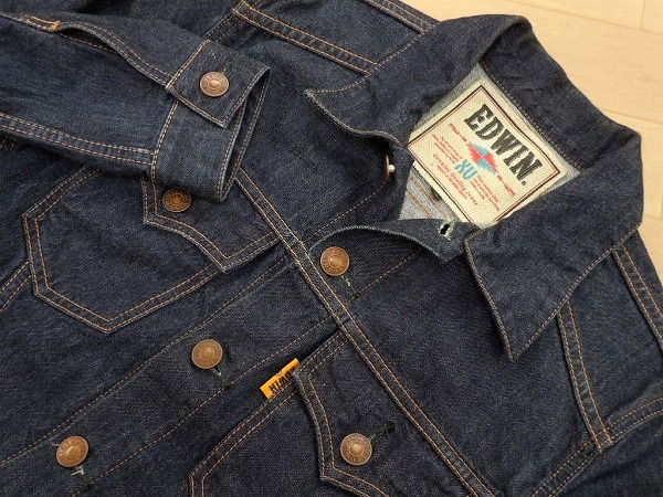 ●エドウィンG10049、ジージャンです。あくまでも古着のため、ノークレームノーリターンでお願いいたします。多少の使用感は、ございますが、とくにダメージございません。素材は綿100です。 定番の人気アイテムで、色も濃く、活躍すると思います。