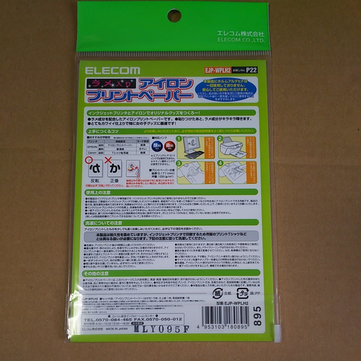 ■その他:アイロンプリントペーパーハガキサイズ(フリー)5枚、仕上紙1枚、取扱説明書