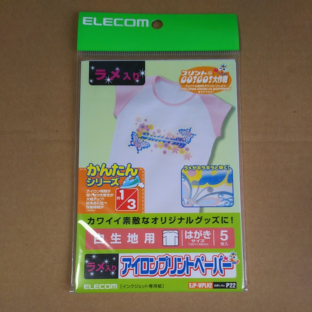 ◎ELECOM アイロンプリントペーパー ラメ素材入り 白生地専用 はがきサイズ 5枚入 EJP-WPLH2