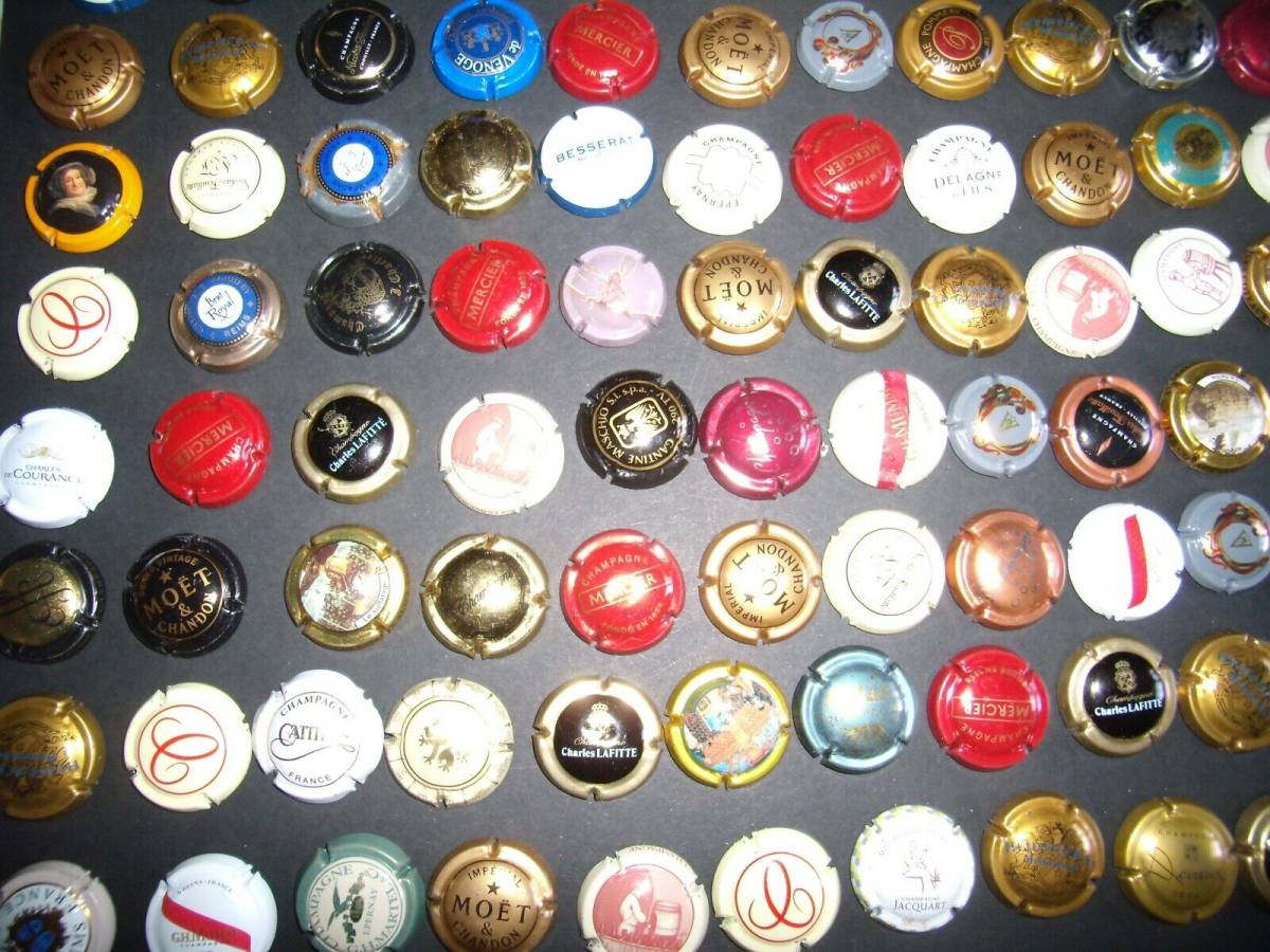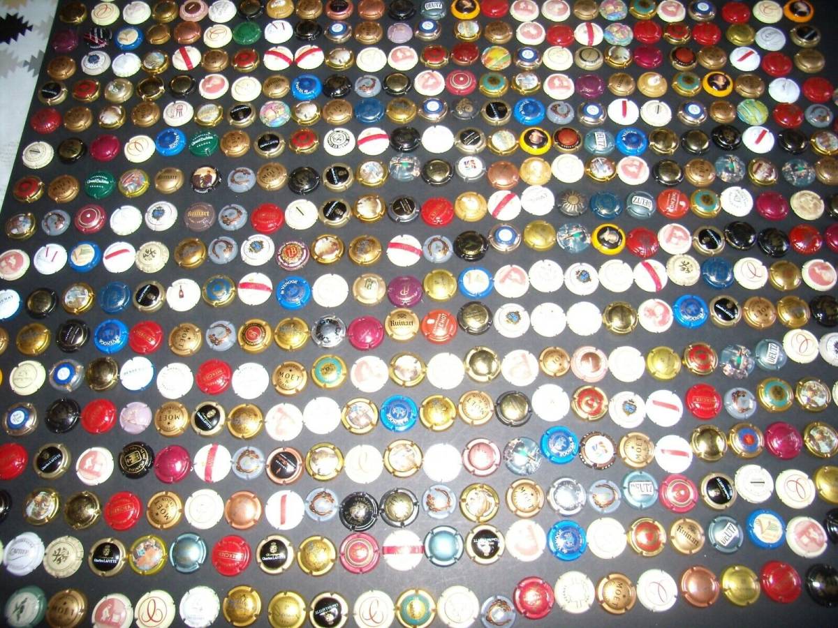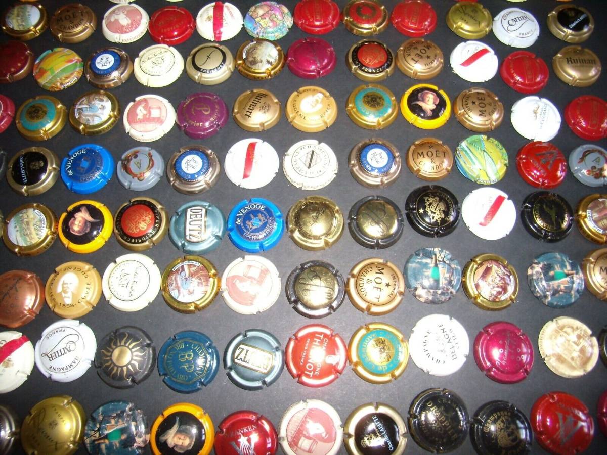 | シャンパン ミュズレ(王冠)のコレクション、約450個セットです。 シャンパン生産者がミュズレ内の王冠に工夫を凝らしたデザインを施し、 メゾンのエンブレムまたはメーカー名が表示され、生産者や製造年により異なり、 デザインのものからカラフルなものと様々です。 こうして収集するようにミュズレをコレクションしている人がおり、 専用のケース(ミュズレボード)も売り出されています。 | |||