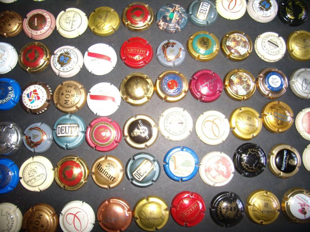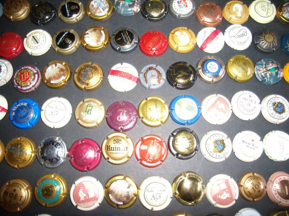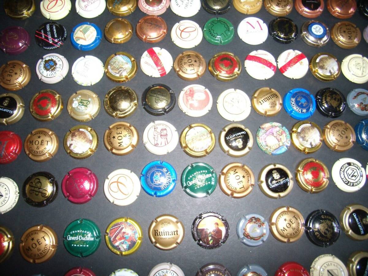 | シャンパン ミュズレ(王冠)のコレクション、約450個セットです。 シャンパン生産者がミュズレ内の王冠に工夫を凝らしたデザインを施し、 メゾンのエンブレムまたはメーカー名が表示され、生産者や製造年により異なり、 デザインのものからカラフルなものと様々です。 こうして収集するようにミュズレをコレクションしている人がおり、 専用のケース(ミュズレボード)も売り出されています。 | |||