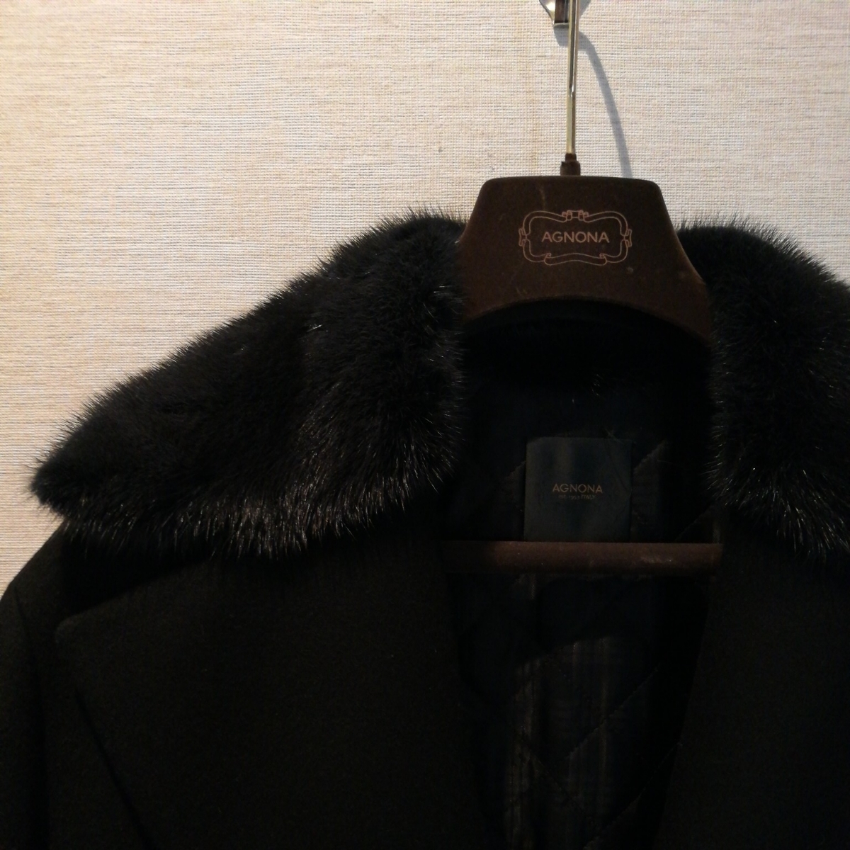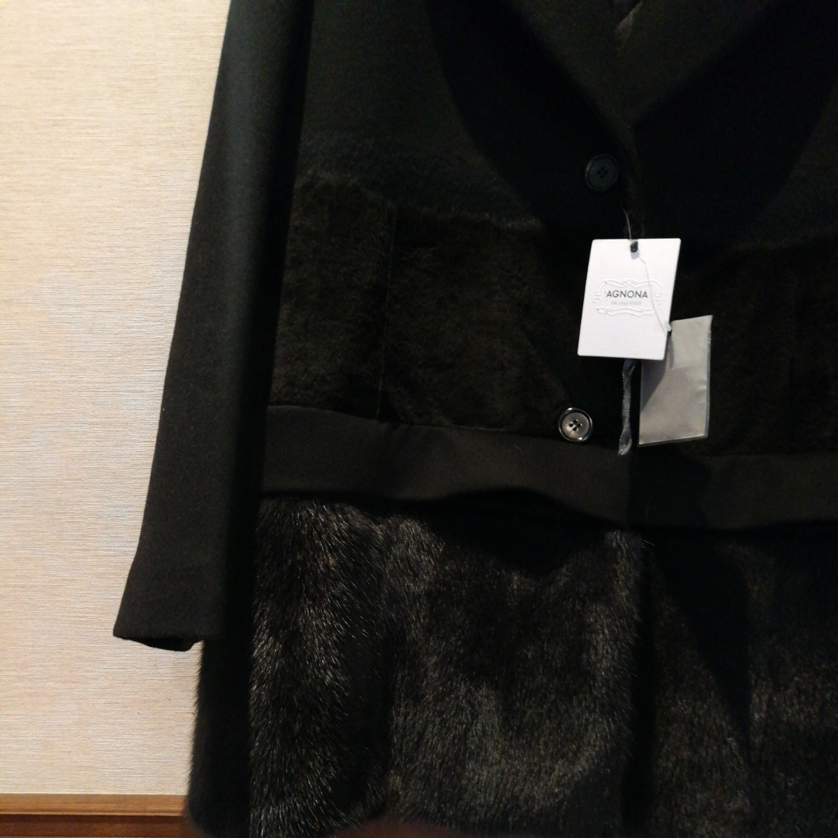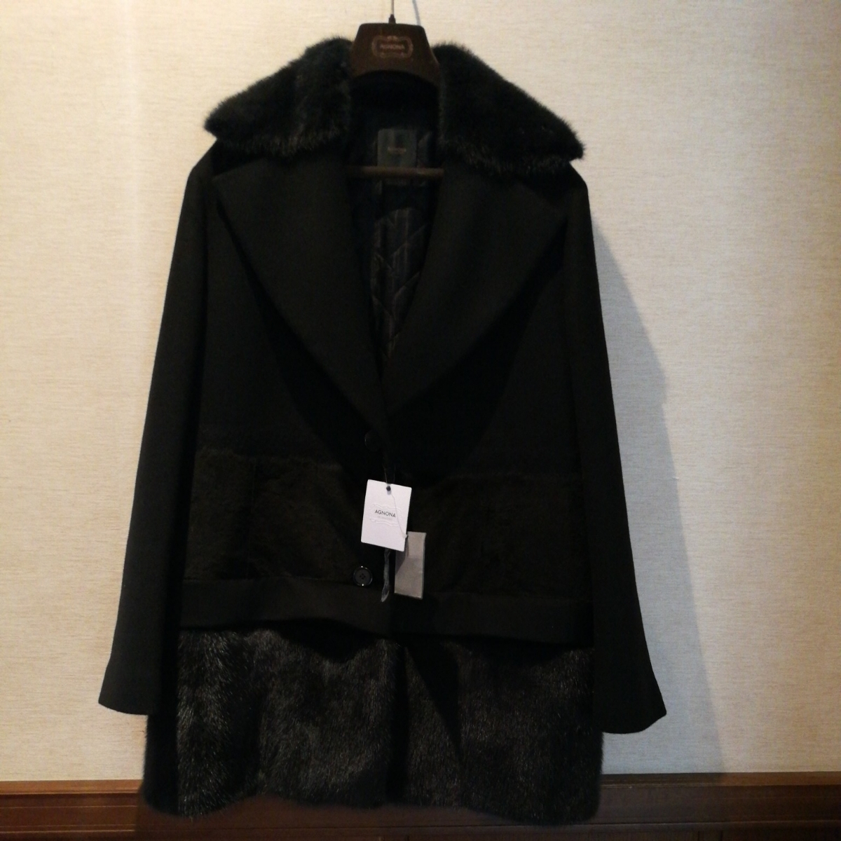 襟と下部分はミンクの毛皮で中央の切り替えはシェアードミンク、それ以外は羊毛です。
