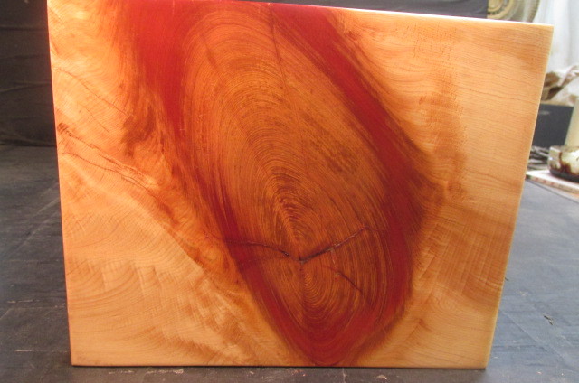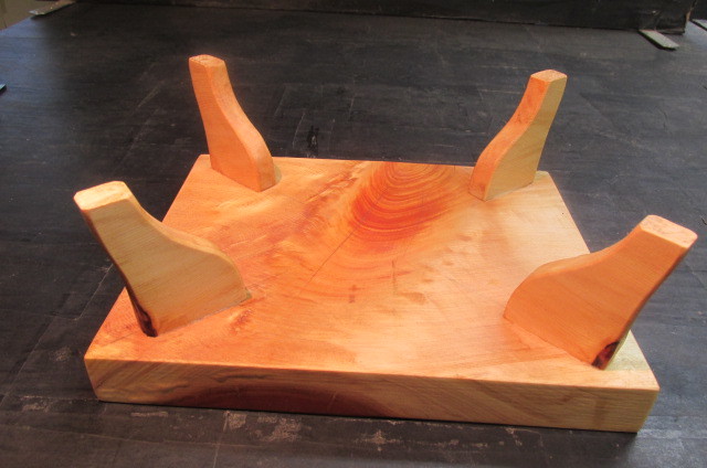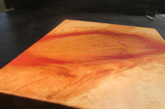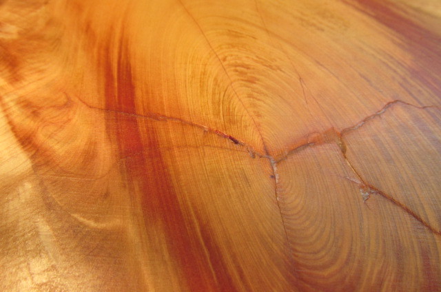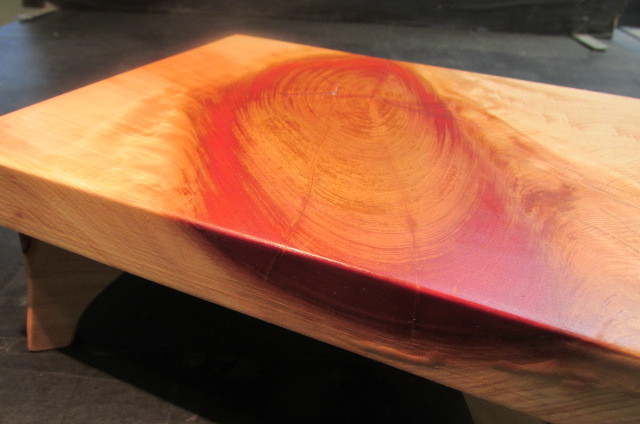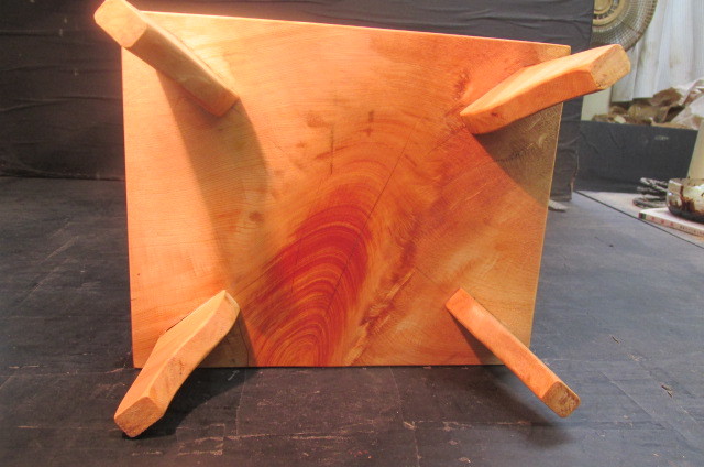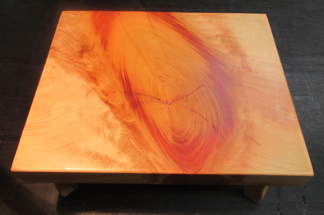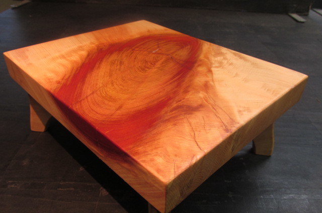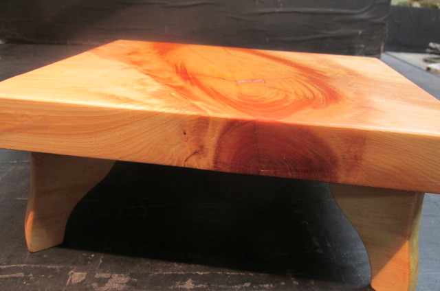 木曽桧といえば式年遷宮に使われる木として有名ですが、この木には昔から神が宿ると言われてきました。この度はその木曽桧の中でも大変希少といわれる赤節を使って飾り台を作ってみました。大赤節の迫力と妖艶な魅力を余すことなく表現したまたとない飾り台に仕上がりました。