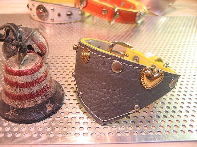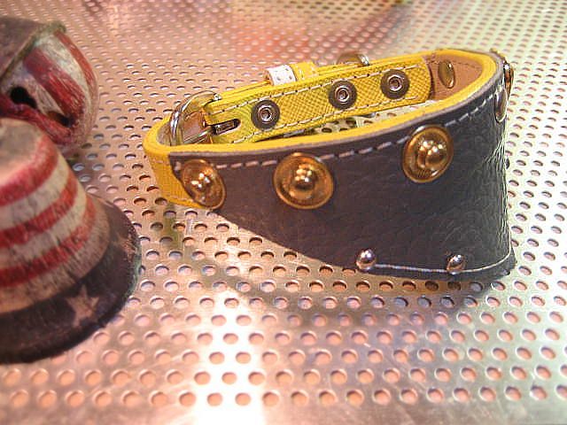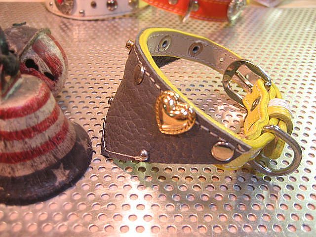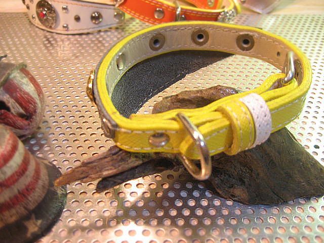 911 わんこのオリジナルレザー首輪・小型犬 ・犬の首輪 グレー×黄色
