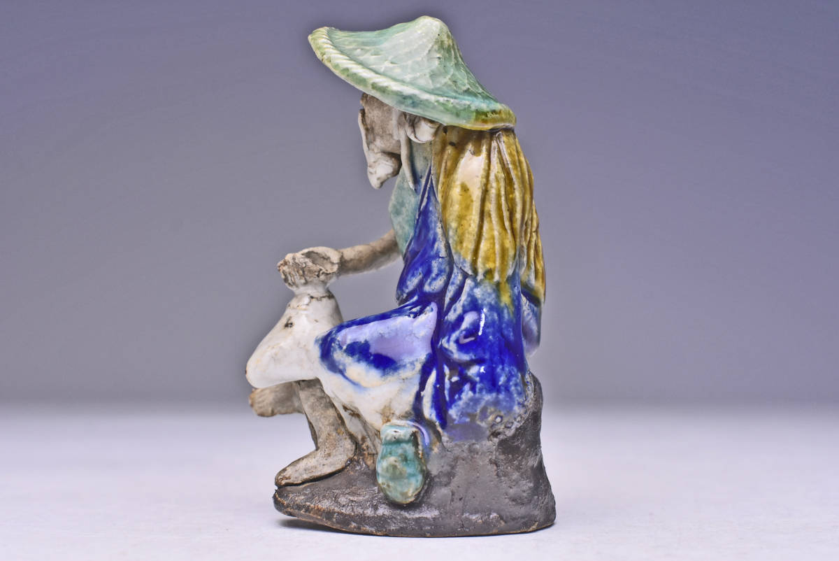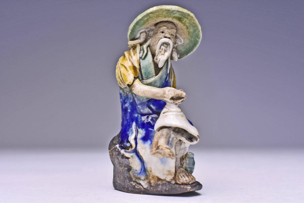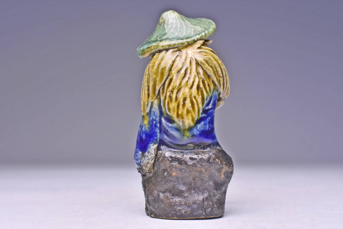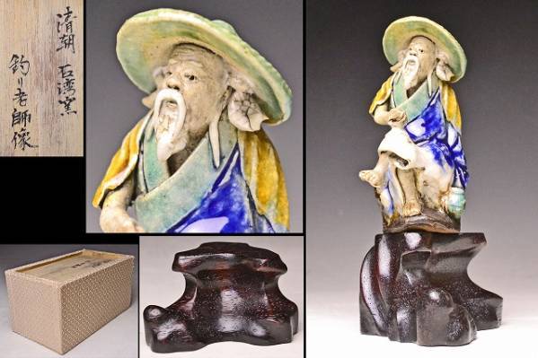 清朝時代 ★ 色絵釣り師老人像 ★ 保存箱 ・ 唐木台 ★ 太公望 ★ 人物像 ★ 細工物 ★ 置物