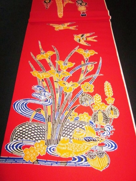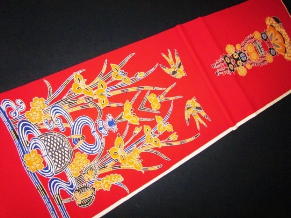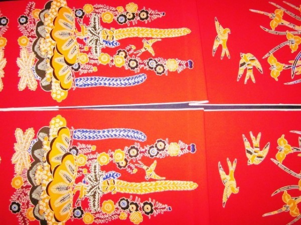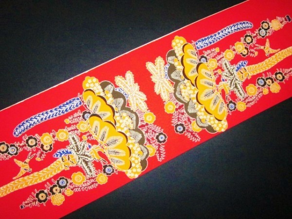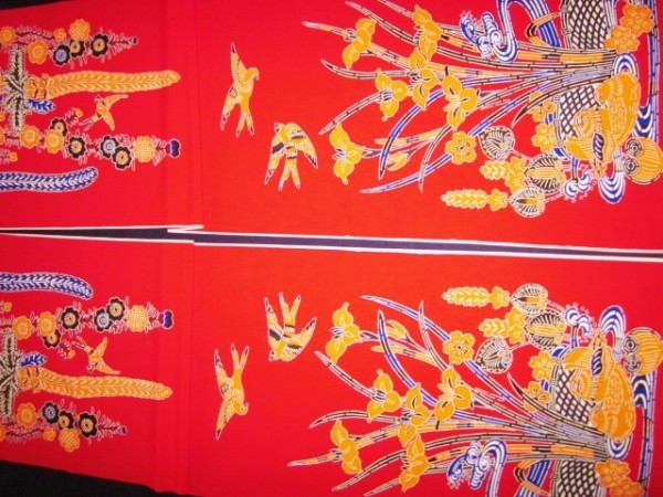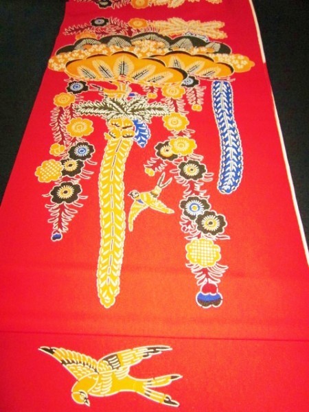 | 【京わぎれ】ポリエステル 琉球衣装(松打掛) 紅型 赤地 おくみ別タイプ 13m A配色 少難品① | ||||