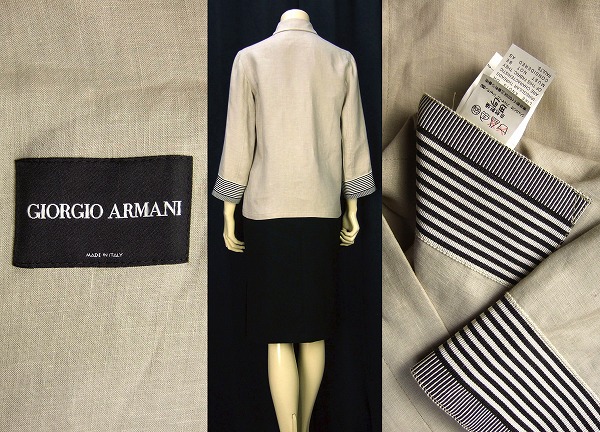 H 新品同様★GIORGIO ARMANI ジョルジオアルマーニ★伊製(イタリア製)*麻(リネン)100%*高級ジャケット*38表記★38~40*M~L*9~11号相当