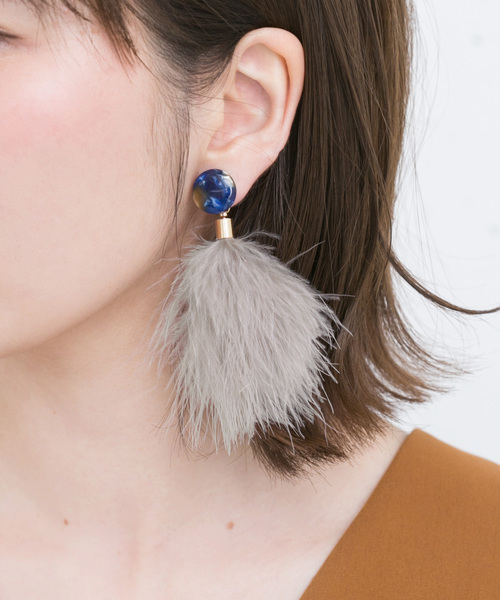 2018SS SMELLY&SENSE OF PLACE URBAN RESEARCH アーバンリサーチ マーブルフェザーキャッチピアス 羽