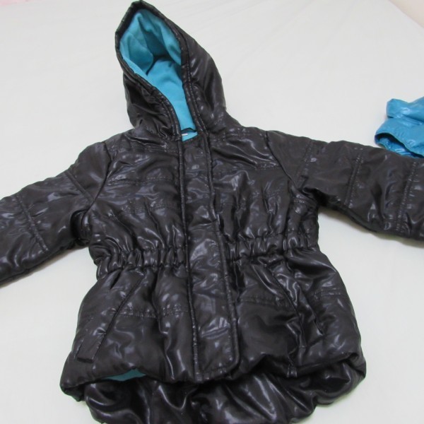 黒色のジャンパーは西松屋の中綿(ポリエステル100%)ジャンパーです。