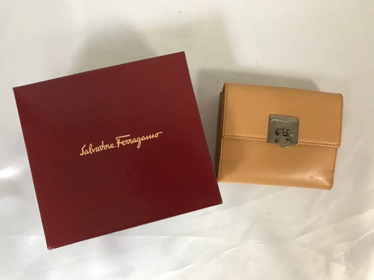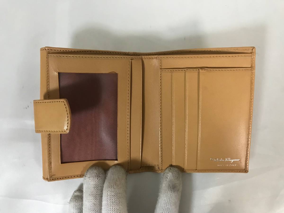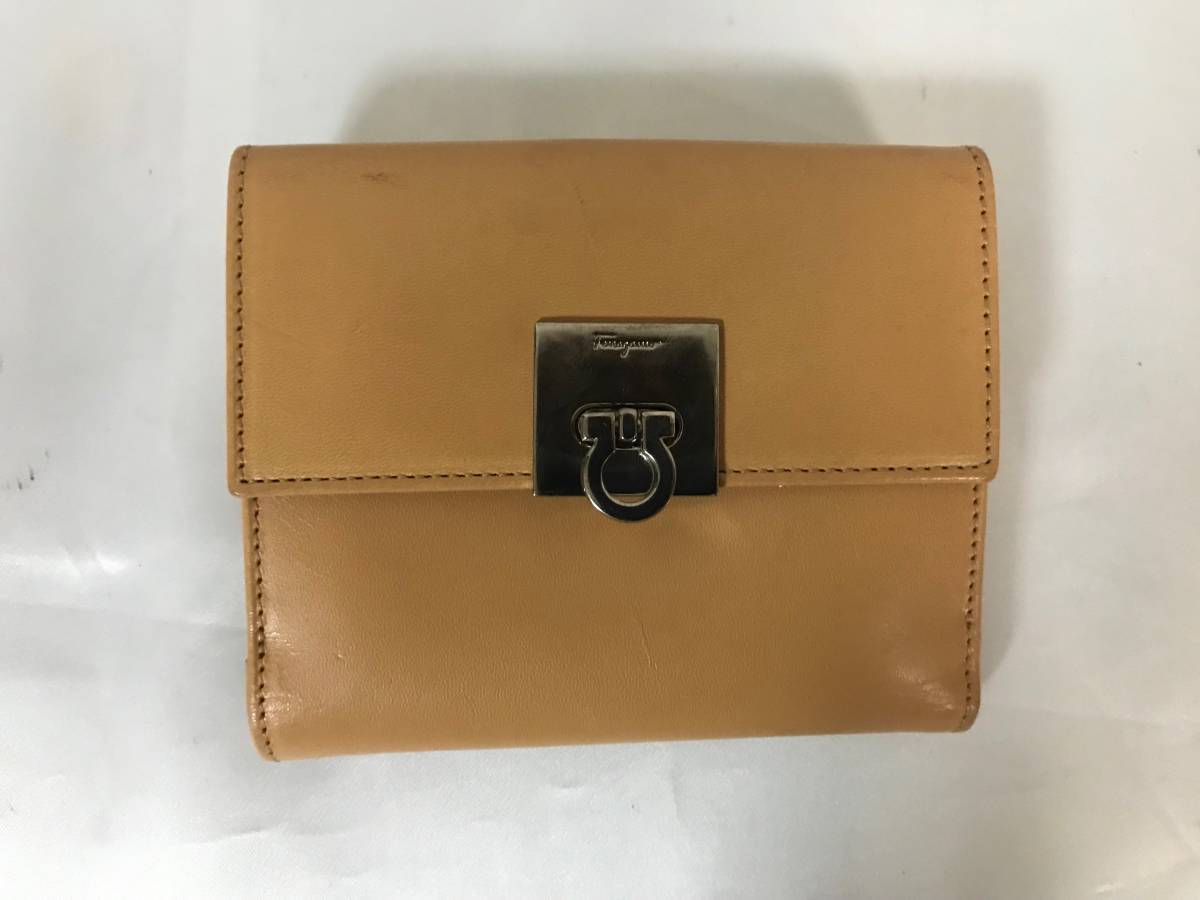 商品名:本物サルヴァトーレフェラガモFERRAGAMOガンチーニ金具本革レザー二つ折り財布サイフレディースベージュブラウン茶