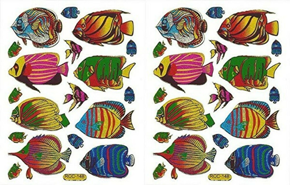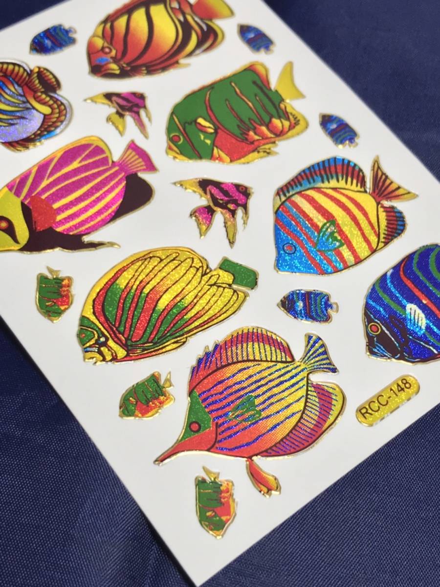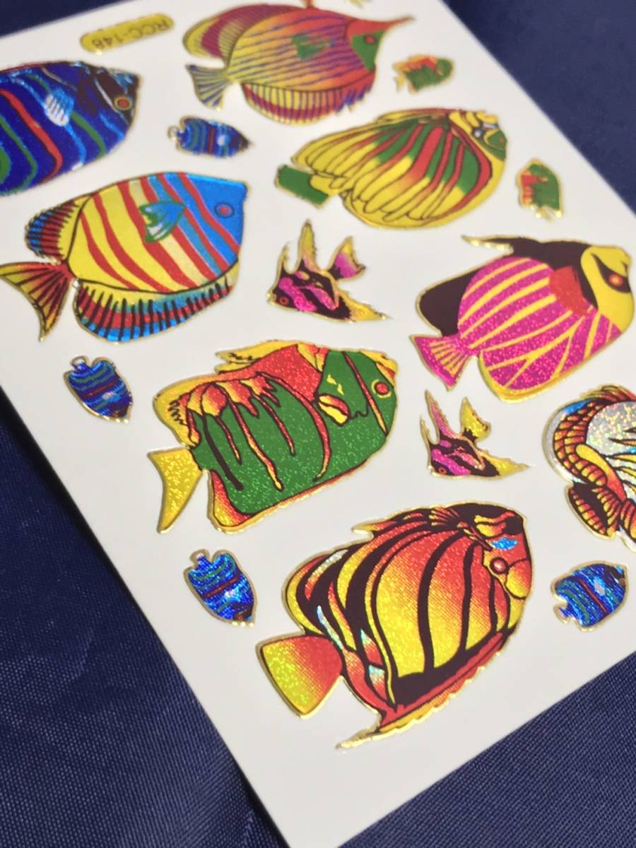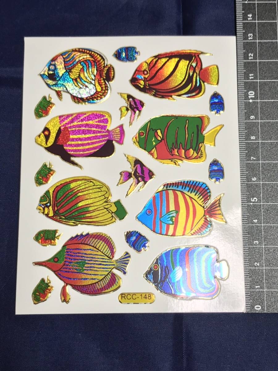 /防水 ラメ加工 おさかな ステッカー 2点 セット スマホ タブレット ごほうび 熱帯魚 グッピー エンゼル フィッシュ カレンダー TSS-658X2
