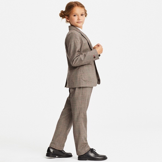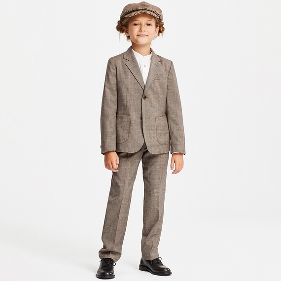 【新品・100・ベージュ】ユニクロ×イネス キッズコレクション ウールブレンドチェックジャケット 95-105 100 110 チェック柄 ジャケット