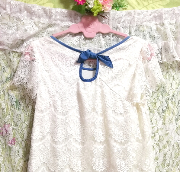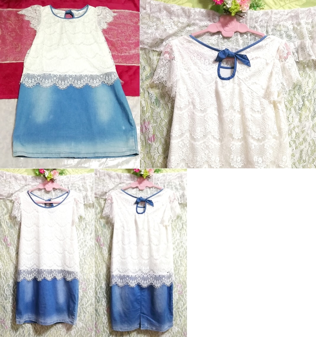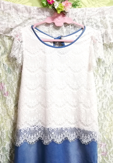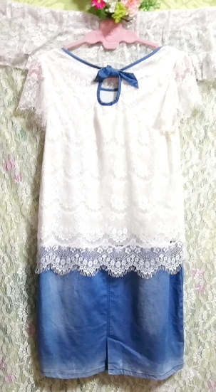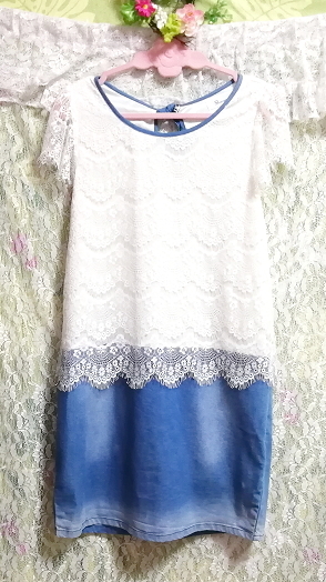 白ホワイトレースデニムネグリジェスカートワンピース White lace negligee denim skirt dress