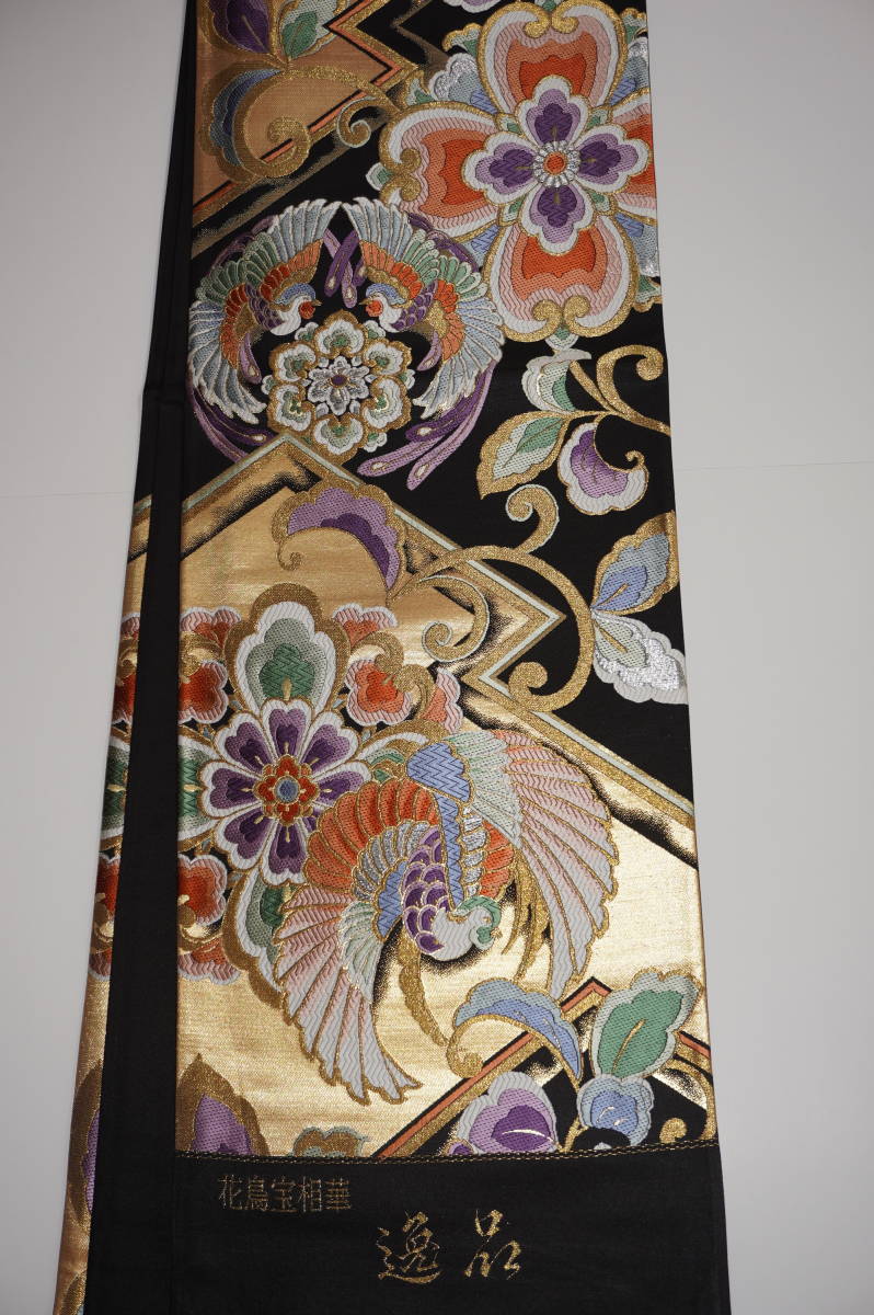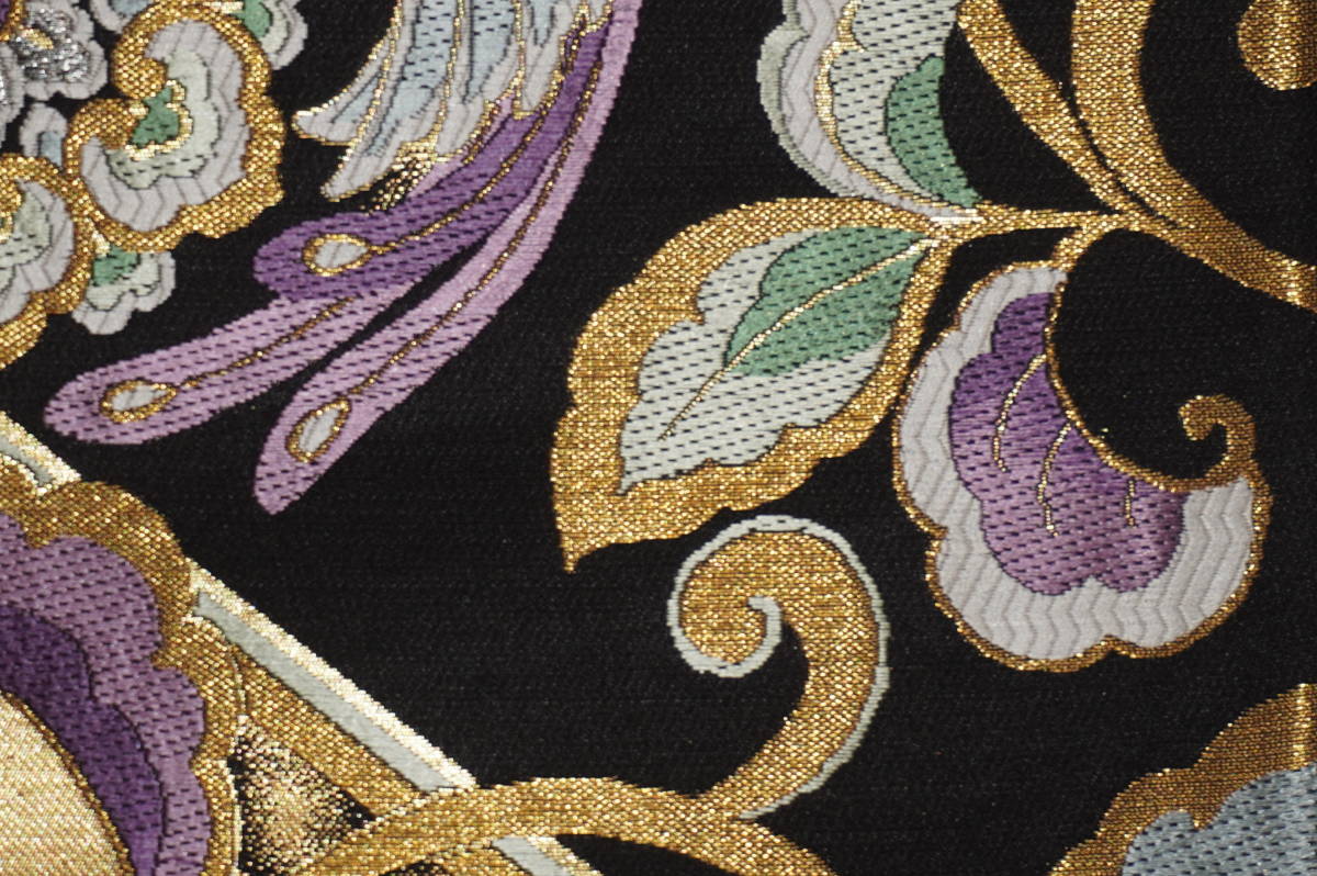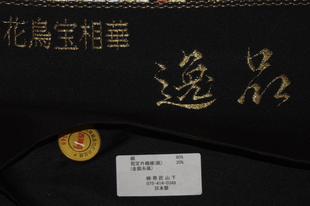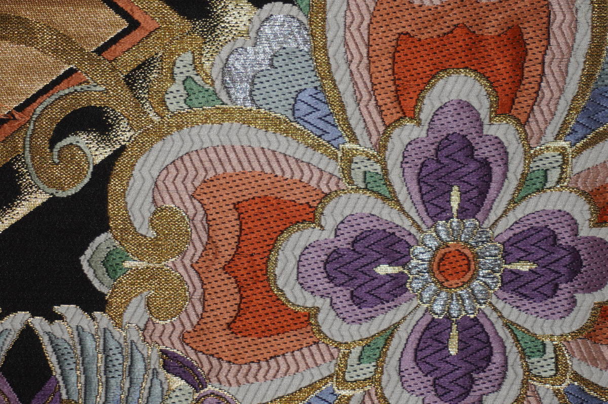 仕立てつき振袖用帯 西陣6通柄袋帯 黒地(中無地黒無地、裏地黒無地) 絹100%(新表示:絹80%指定外繊維(紙、金属糸風)20%)  新品み仕立て品ですがこのお値段で仕立てつきで、納品です。なお、最終日まで待っていただかなくとも、入札した時点でオークションは終了し落札者となります。お値段的にもお安く設定いたしましたお買い得品です(西陣帯です)。もちろん芯込みの仕立て付きですが、仕立てなしの場合でも金額は変わりません。