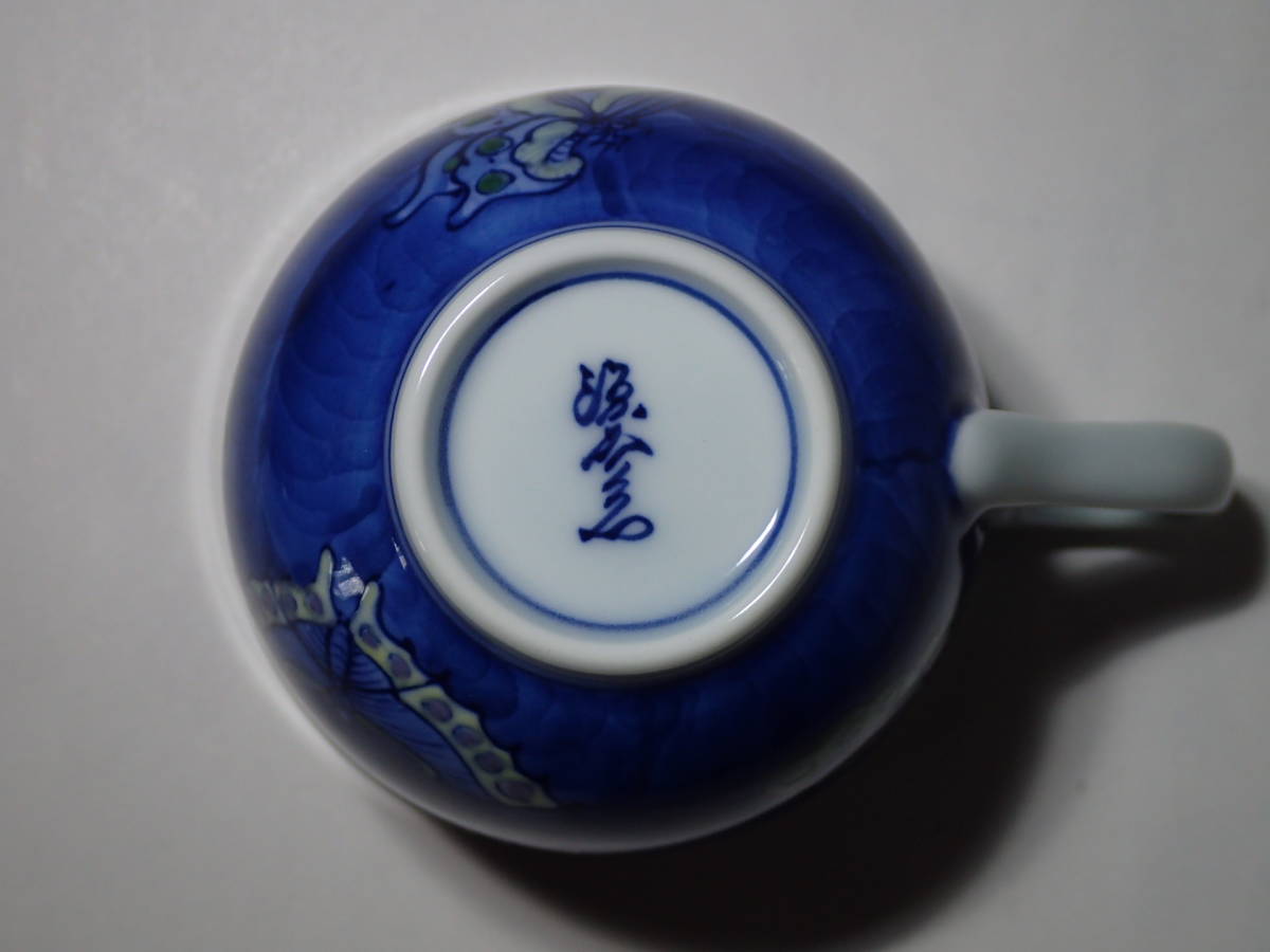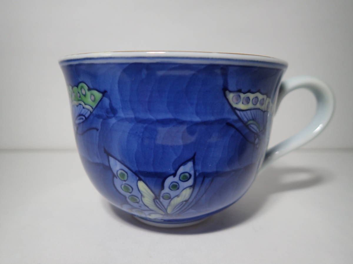 【未使用】有田焼 源右衛門 碗皿 染錦蝶絵 共箱 コーヒーカップ/ティーカップ ソーサー 蝶々 珈琲碗皿