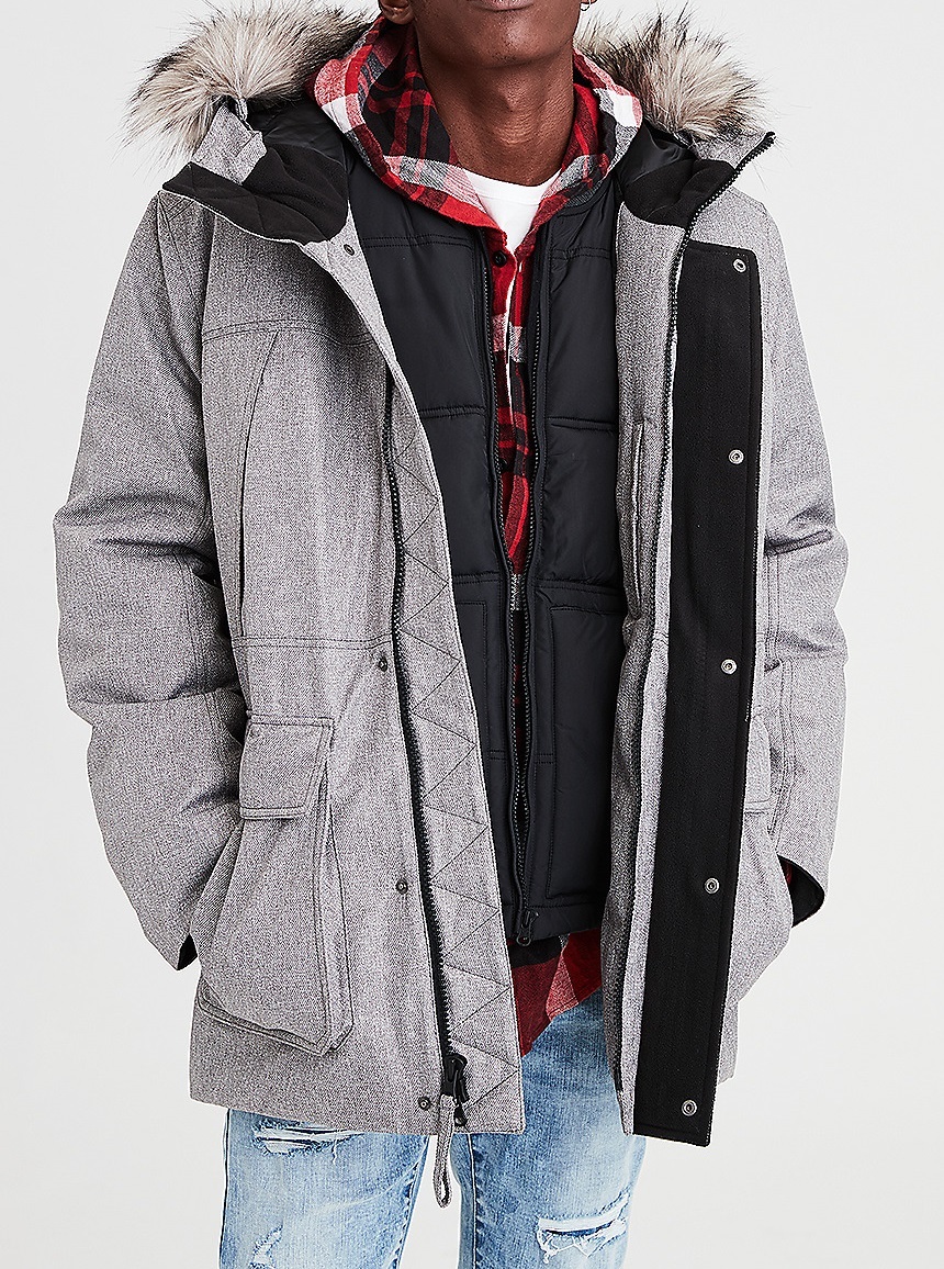悪天候下でも、暖かく見た目もスマートでいられる最強アウター。フードには取り外しも可能なフェイクファーを備え、冷気から顔を守ります。腰ポケットはフラップ付きのポケットに、ハンドウォーマーポケットを重ね付け。さっと手が入れられ、重宝します。