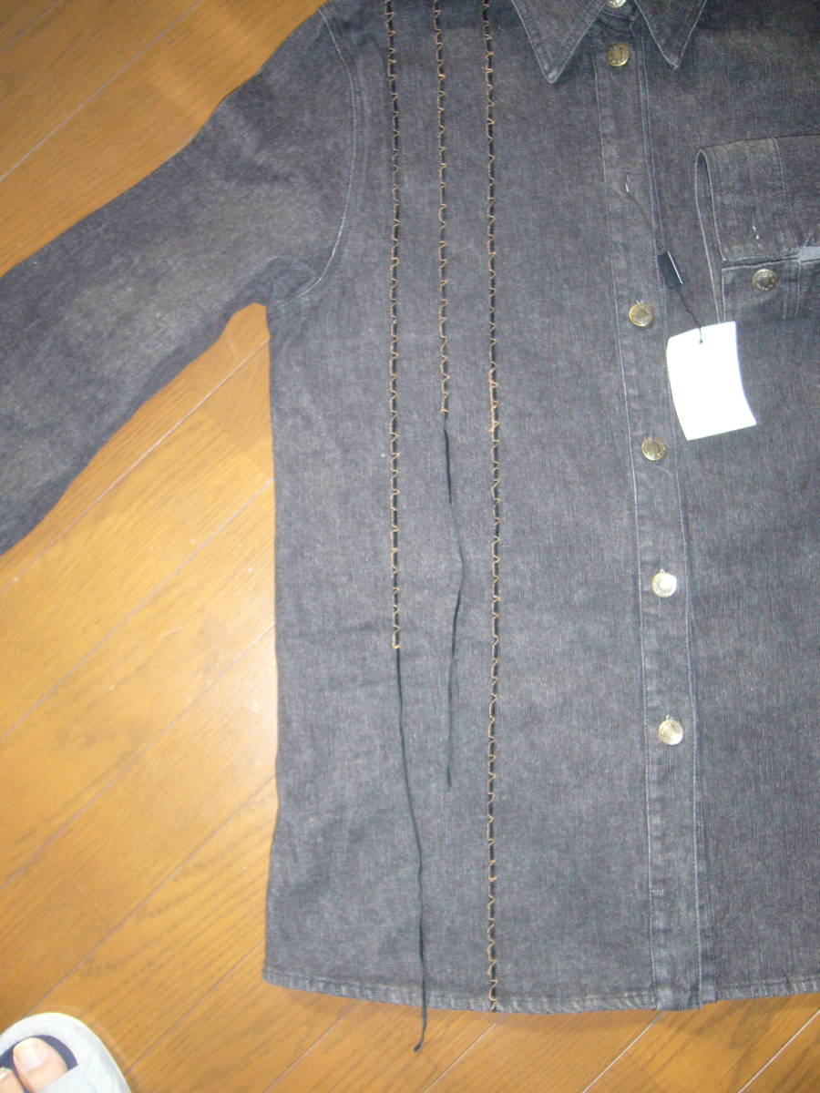 294-77♀:NUOVO LOOK.ノーボルック デニム シャツジャケット イタリア製 輸入着 新品旧作品 色.黒 サイズ.23 大き目