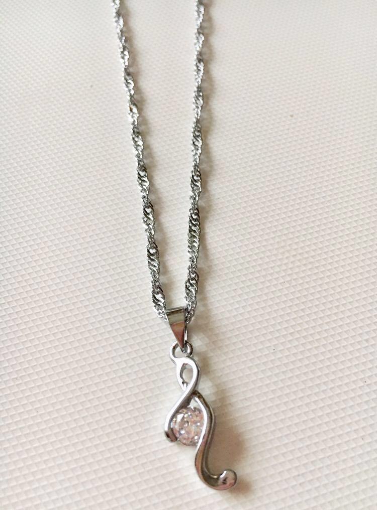 こちらは、 シルバーカラーのチェーンと クリアビーズが付いた音符 の ネックレス になります♪