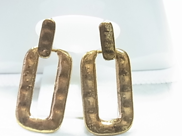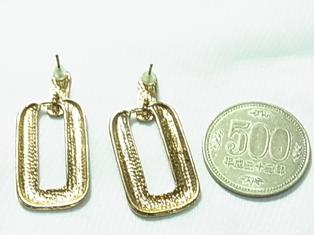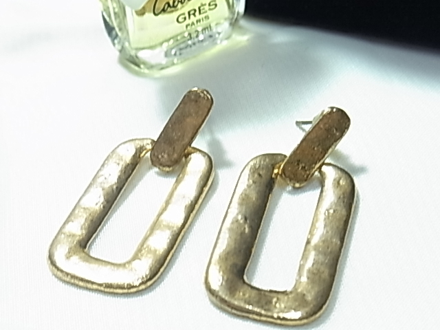 型押しされたようなマットゴールドカラー 艶消しゴールド 長方形の輪っかデザイン シックなピアス★