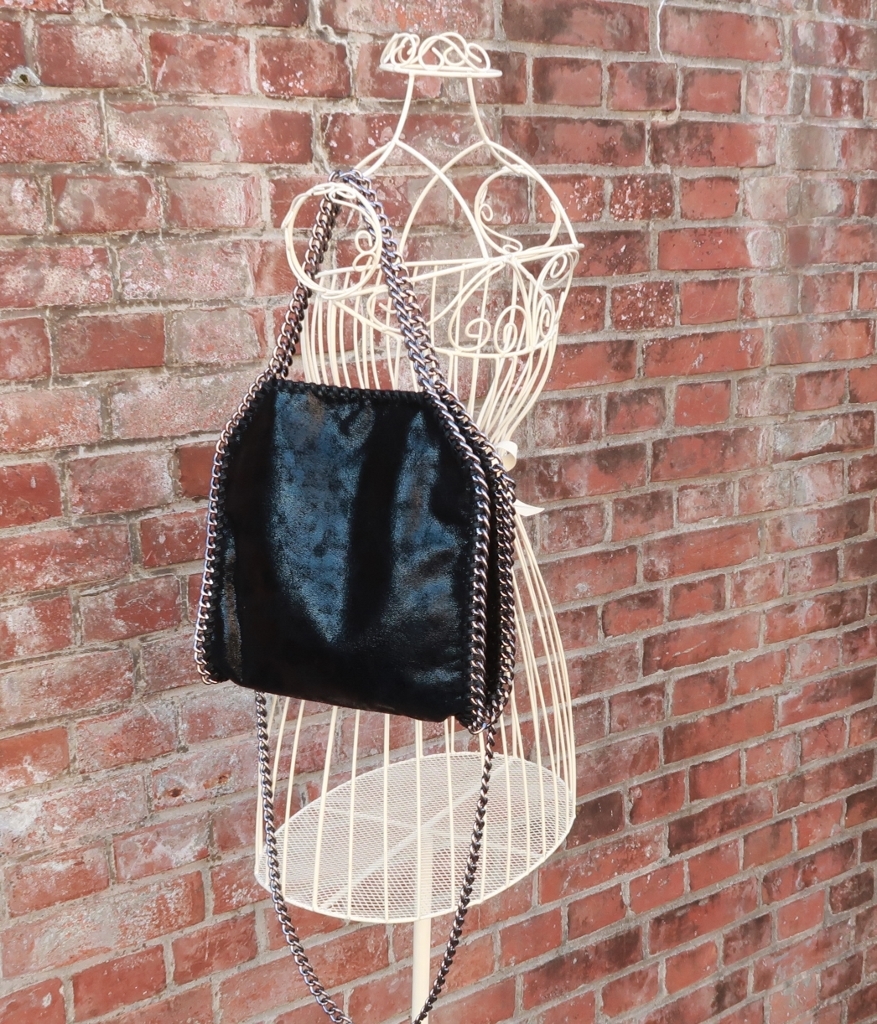 艶やかで上質なエコレザーを使用しチェーンのトリミングが施された高級感がある上品な2WAYバッグ♪
