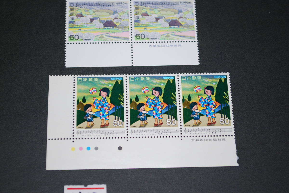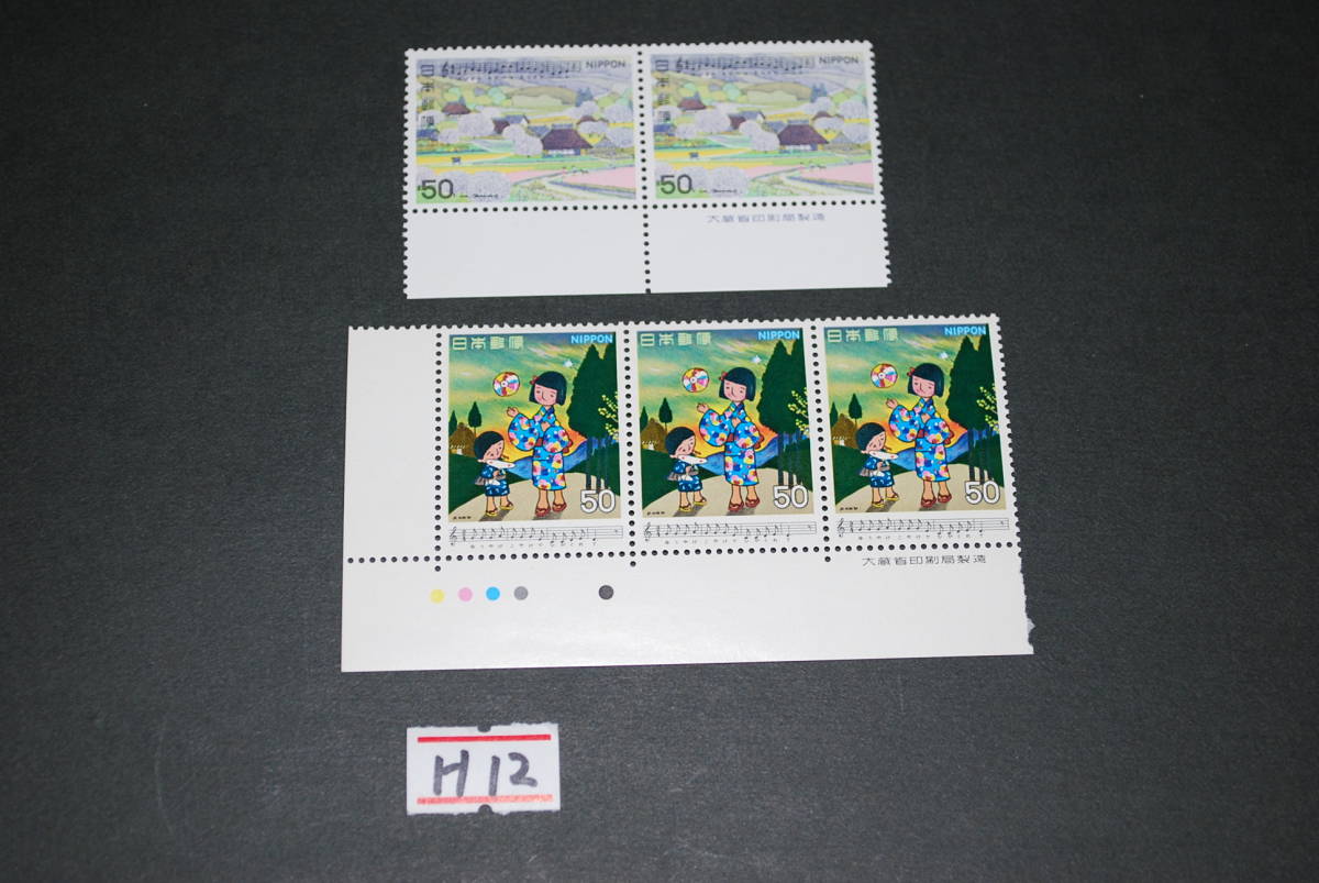 商品説明 未使用 人気記念切手 日本の歌シリーズ 5枚セット H12 ・日本の歌シリーズ 第1集 1979 夕やけこやけ、第4集 1980 春の小川