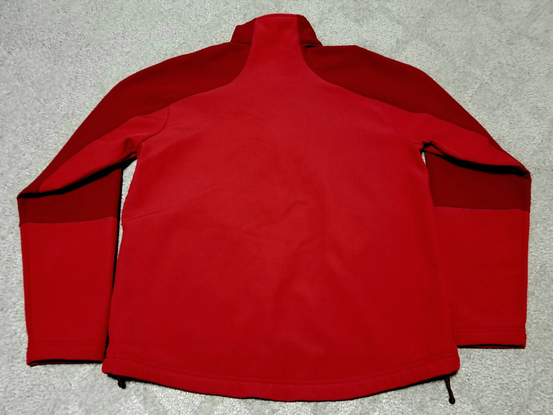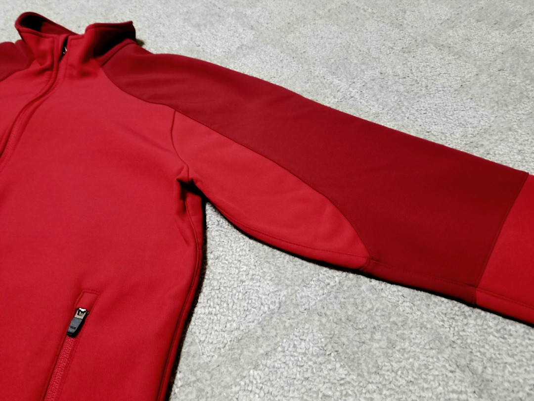 ストレッチの効いた裏フリース地の一着で両前裾にポケットが付き裾にはドローコードが付いています、サイズ表記はM-REGです。