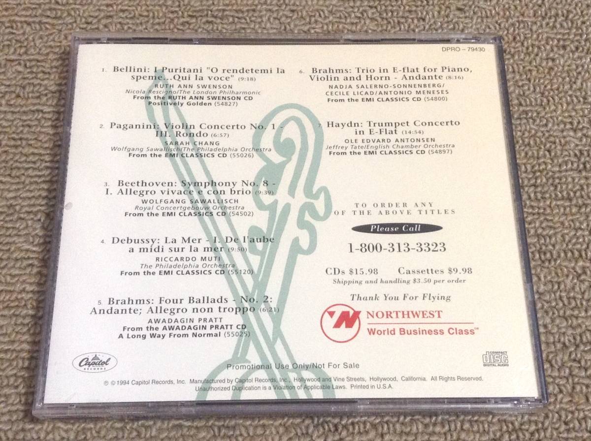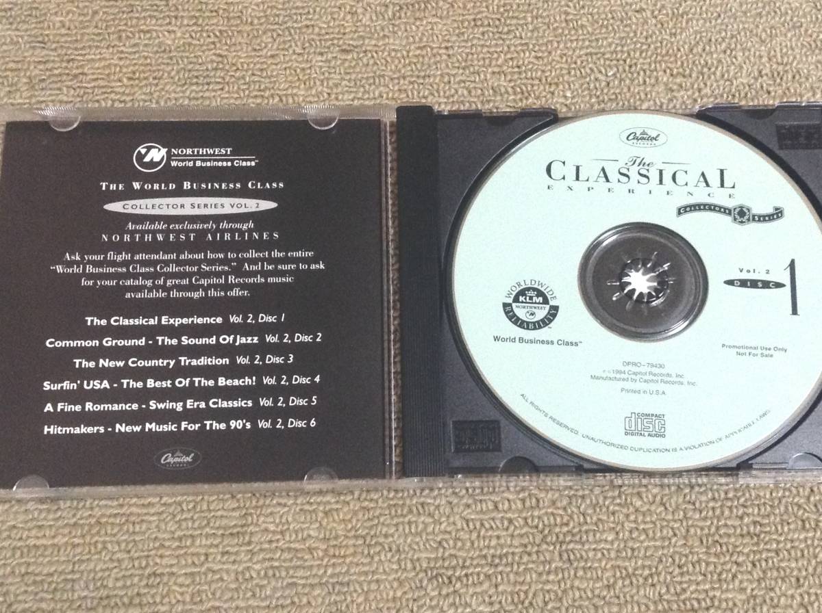 ②ビジネスクラス・アメニティCD  "THE CLASSICAL EXPERIENCE" 1994年にKLMノースウエスト航空が制作した非売品のクラシック作品全7曲入りCDアルバム。。  コンディション:プラケースにこすれ等、ディスクは概ね良好。