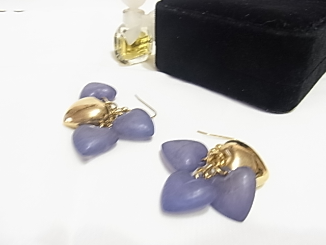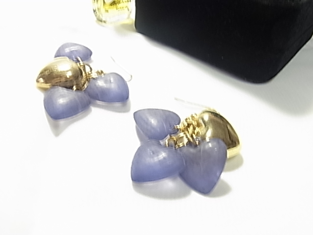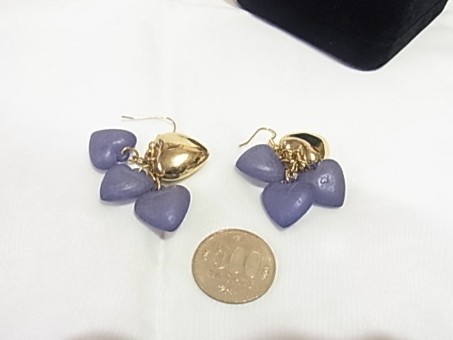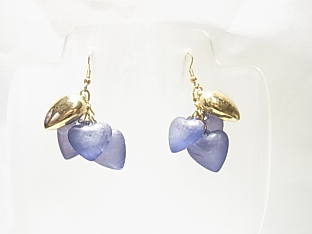 キュートなハート ネイビーパープル調のカラーとゴールドカラーのハート型が可愛く揺れる ゴージャス感あるピアス★