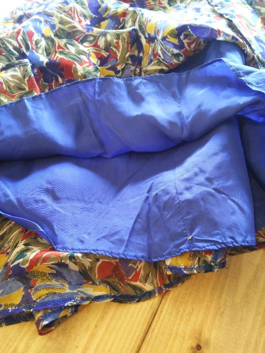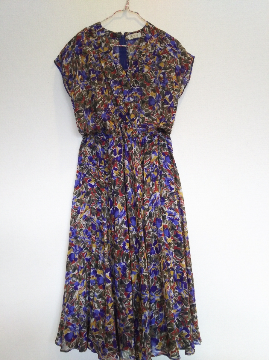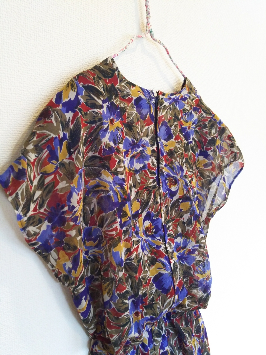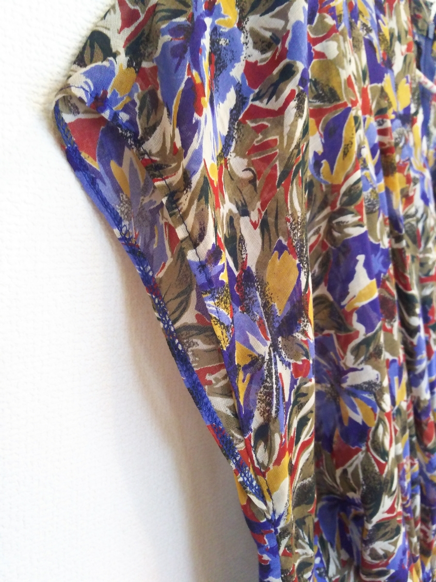 s448 希少 70~80年代 ■posa doll■ ポーサドール 日本製 総花柄 極薄フレアーワンピース 裏地付 肩パット付 Vネック 着丈112 身幅45