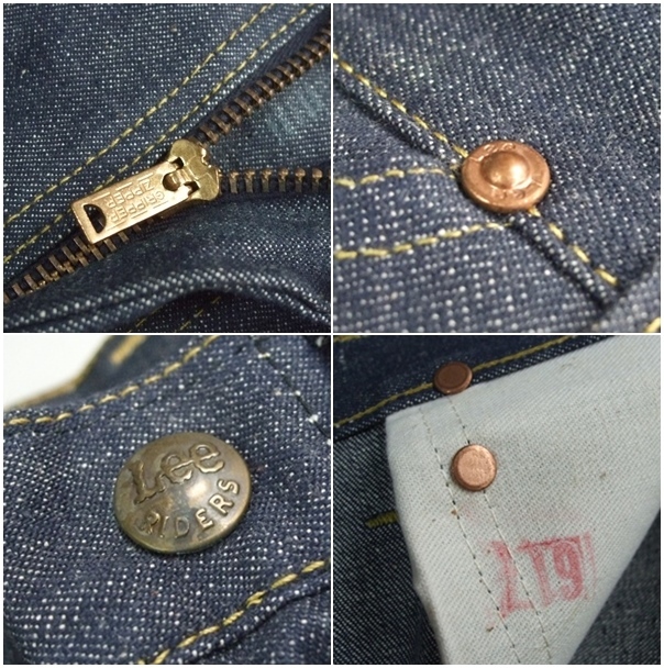 当時物 実物 リー Lee Riders COWBOY PANTS 109-Y デニムパンツ W28 デッドストック ビンテージ 股下リベット GRIPPER ZIPPER 101 200