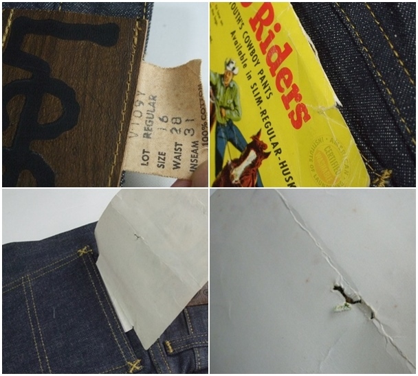 長期保管による傷みや経年劣化等がありますが、50年以上前のビンテージデニムで入手困難です。