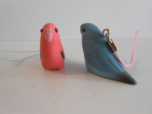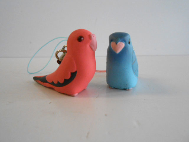 1.サザナミインコ ブルー(クチバシがハート型) 2.アキクサインコ ローズ ◇つぶらな眼差しに癒されることまちがいなし! |