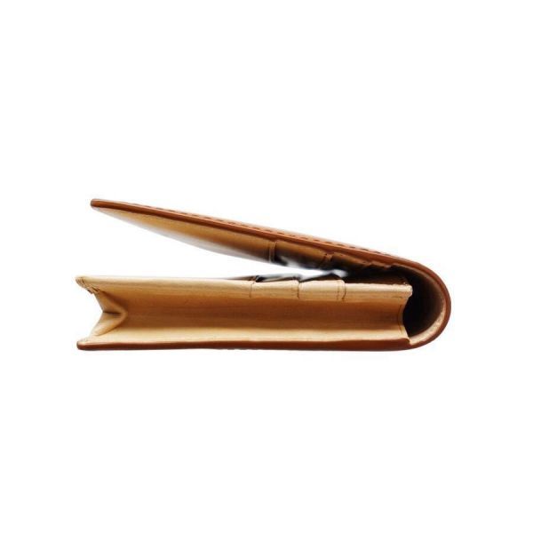 コバ部分には、磨いては塗るといった作業を数回繰り返し施すなどかなり造り込まれています。革部分のコバ磨きやねん引きなど細かいディテールにまでこだわった仕様にしています。 25244はシンプルな2つ折りの長財布です。札入れ3ヶ所、カード入れ12ヶ所、小銭入れが1ヶ所付いています。