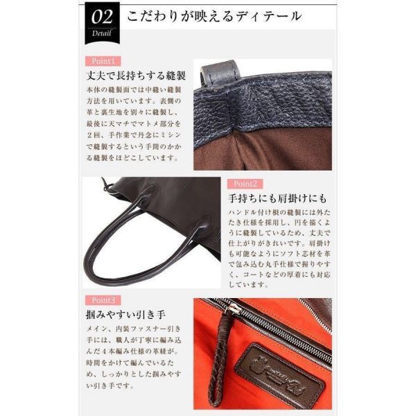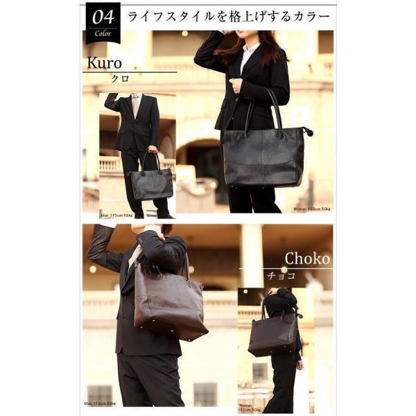 ネイビーを購入。仕事とPVの両方で使え、防犯のためファスナーで締まる、外側にも収納ポケットがある、B4サイズが入る、20000円以下、という条件でトートバッグを探し、この商品を見つけました。内側の収納も充実しており、機能性も十分です。とても気に入りました。総合的にコスパはかなり良いと思います。対応もとても迅速、丁寧でした。機会があればまた利用したいです。