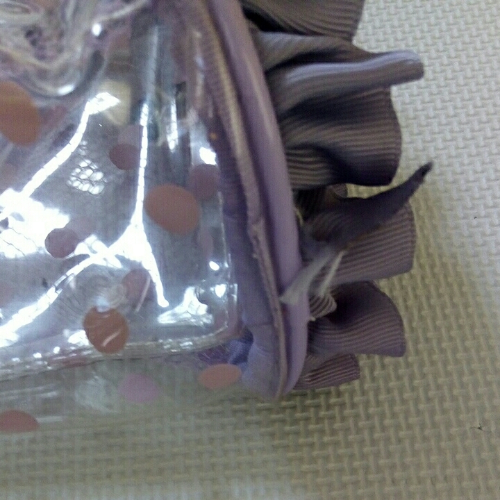 3回ほど使用しました。1ヶ所、底の部分のフリルがほつれてしまっています。その他、見落としがあるかもしれません。縦19cm、横28cm、マチ9cmくらいです。自宅保存の為、気がつかない点があるかもしれません。そのことを考慮した上で、ノークレーム、ノーリターンでよろしくお願い致します。