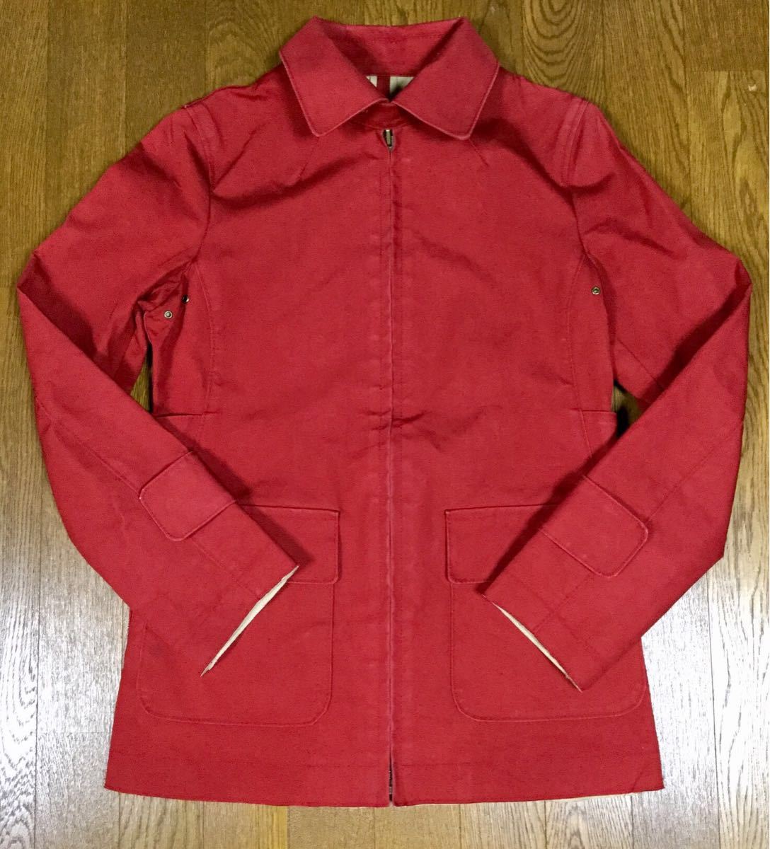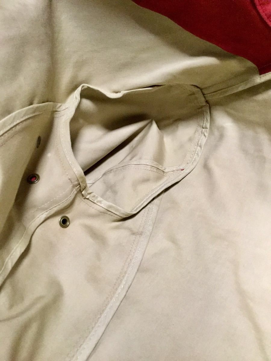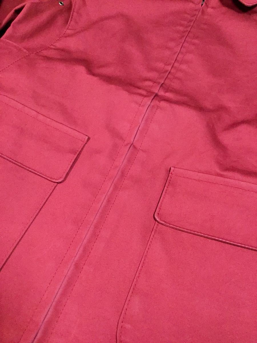 無地でシンプルなデザインながら、スナップ開閉式の袖口やバックベルトのディティール、着脱し易い様にファスナー式が採用されており、実用性にも配慮されたアイテムになります。