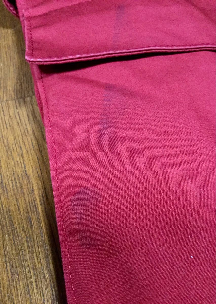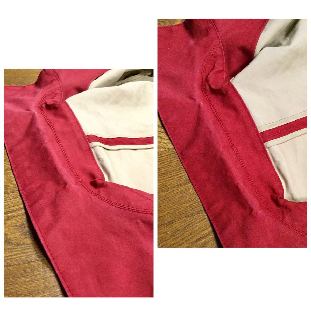 但し、写真にもありますように、擦れによる小傷や色あせや、ジップや金具による生地の変色が右側のポケットと右袖口に見られます。