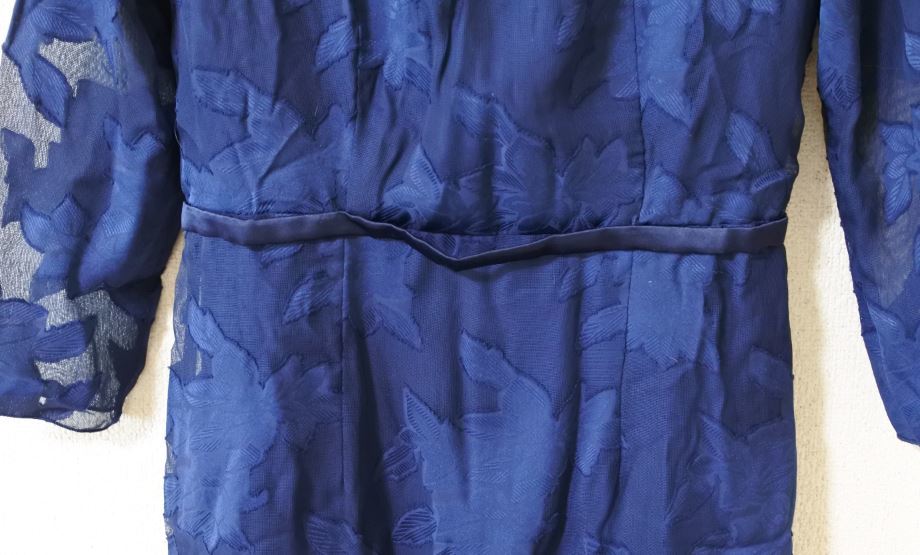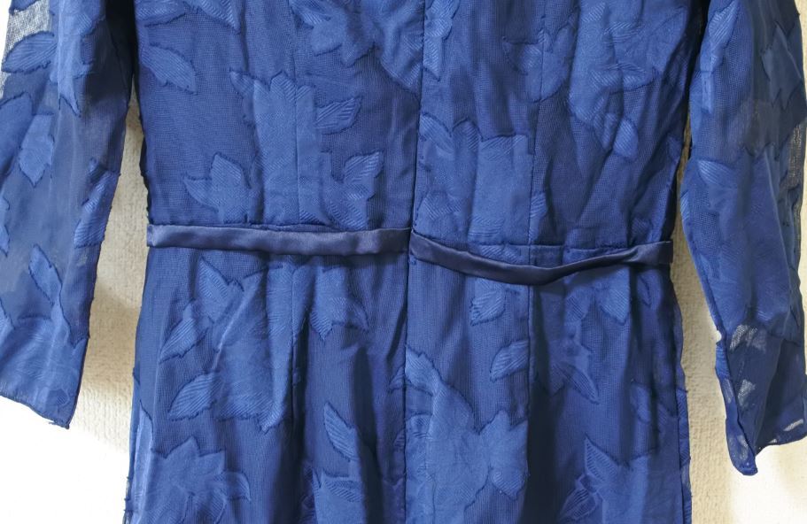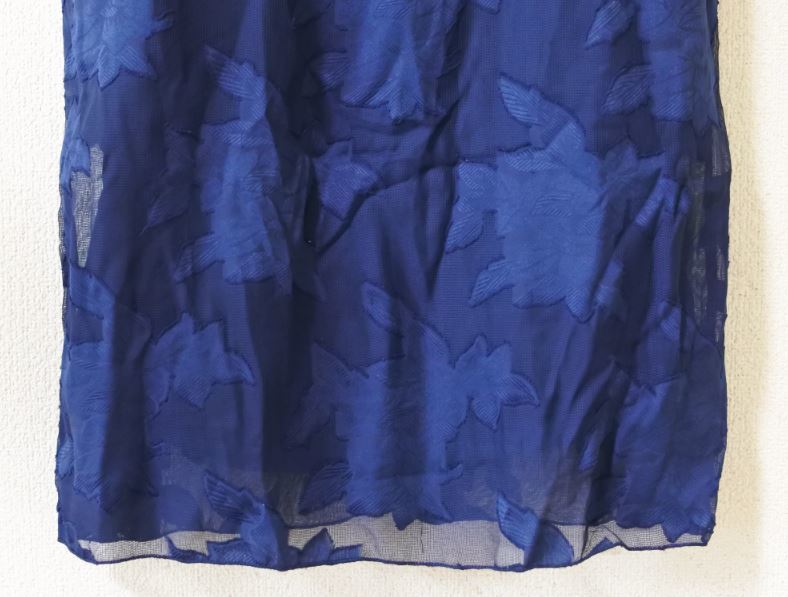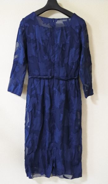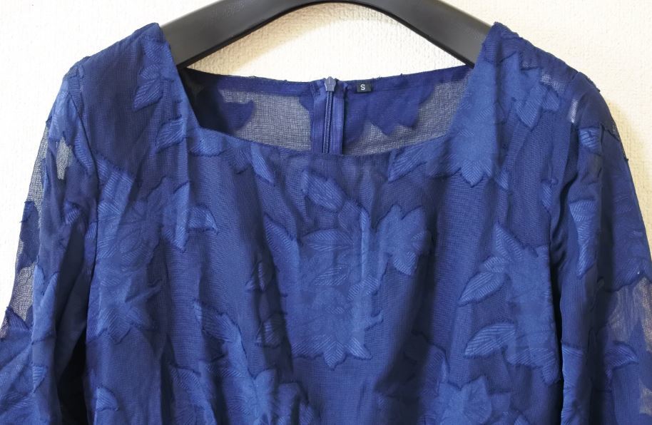 ワンピース レース 透け感 スクエアネック ネイビー 七分袖 Sサイズ タイト ondrakk k f0727