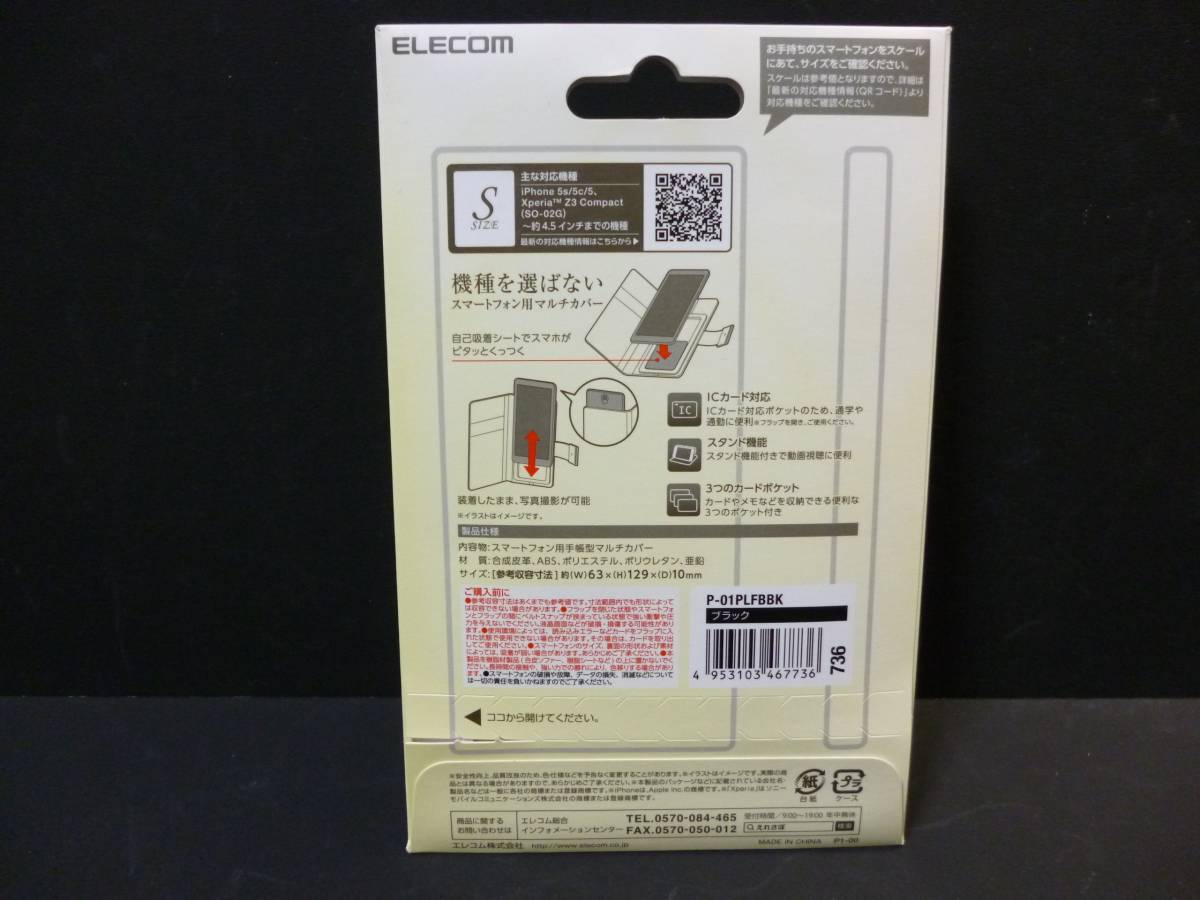 "エレコム(ELECOM)製 汎用スマートフォン用マルチカバー Sサイズ 新品です。 品番=P-01PLFBBKDでカラーはブラックになります。 スマートフォンがピタッとくっつく自己吸着シートを採用し、機種を選ばず使用できますよ! スライドできるのでカバーを装着したまま写真撮影が可能です。 適用は例えばiPhone5S/iPhone5C/iPhone5、XperiaZ3 compact(~約4.5インチまでの機種)になります。 定価=2678円、もしゆうパケットお手軽版よろしければ全国230円で発送可能です。 よろしくお願いします。 *ややパッケージが黄変気味です。 ご了承ください。