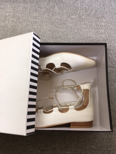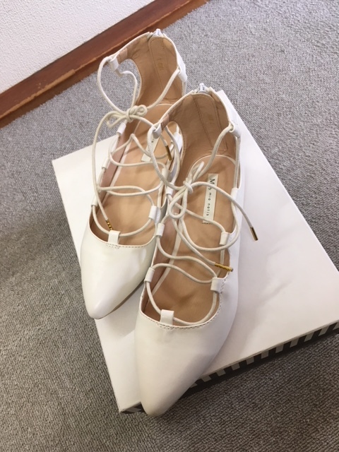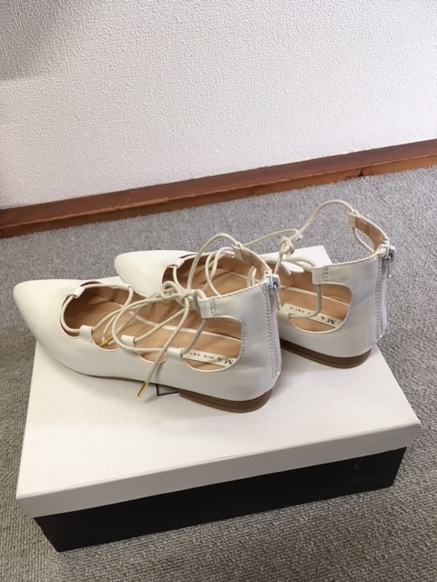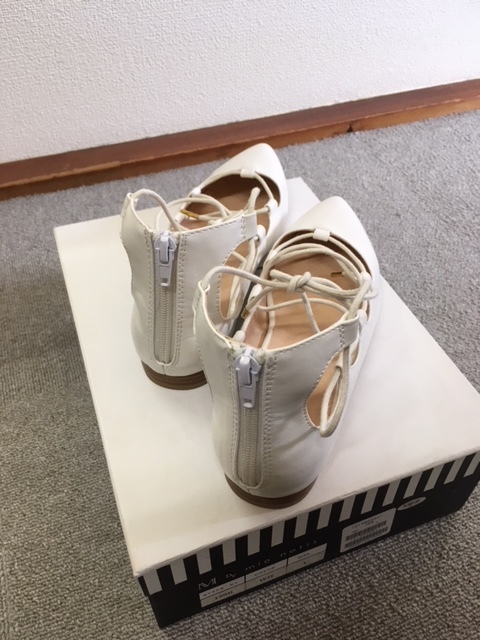 ★新品未使用箱付き★★M by mio notis★編み上げ可愛い、ローヒールパンプス♪(LLサイズ相当)★踵ファスナー★ホワイト(白)★