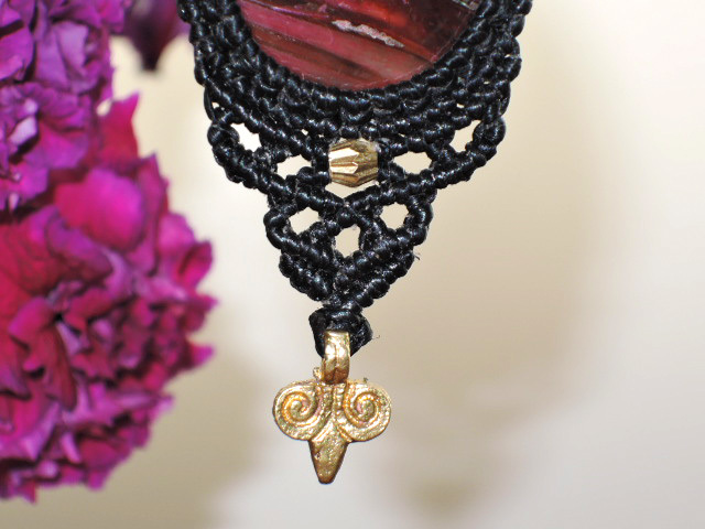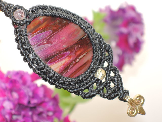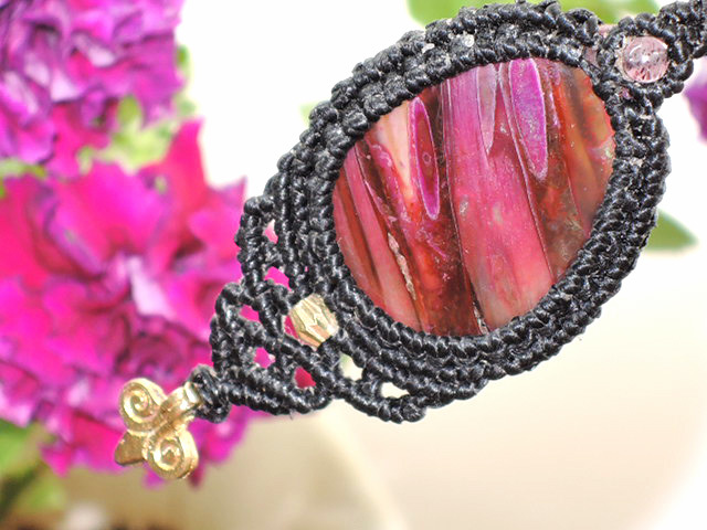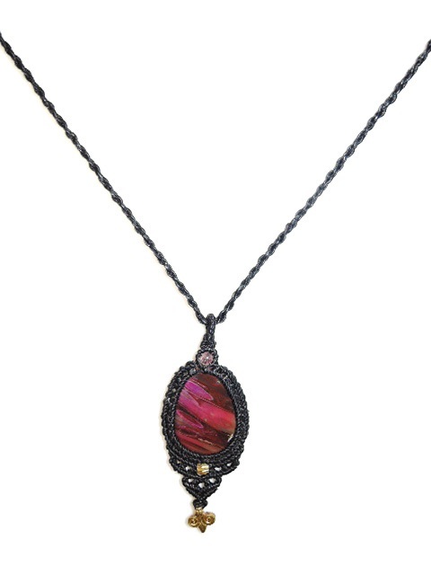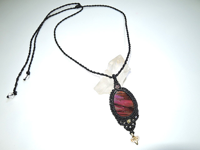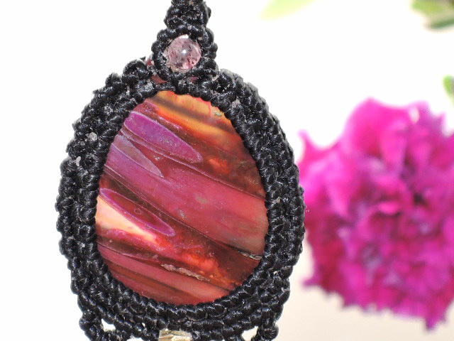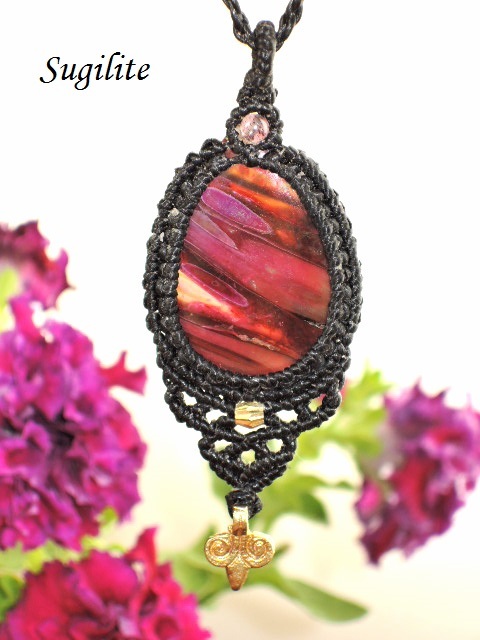★天然石スギライト★マクラメ編み★蝋引き黒紐ネックレス★ハンドメイドペンダント★男女兼用★kamesan